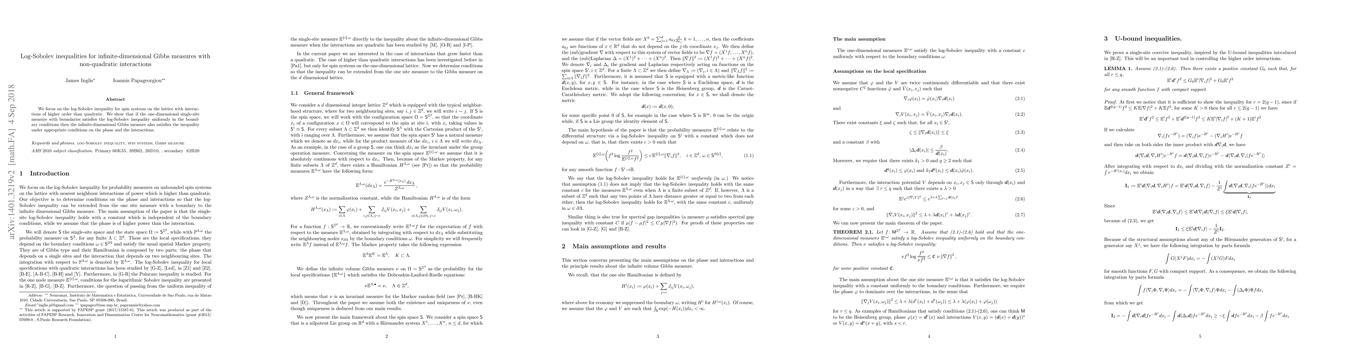 We focus on the log-Sobolev inequality for spin systems on the lattice with interactions of higher order than quadratic. We show that if the one-dimensional single-site measure with boundaries satisfies the log-Sobolev inequality uniformly in the boundary conditions then the infinite-dimensional Gibbs measure also satisfies the inequality under appropriate conditions on the phase and the interactions.