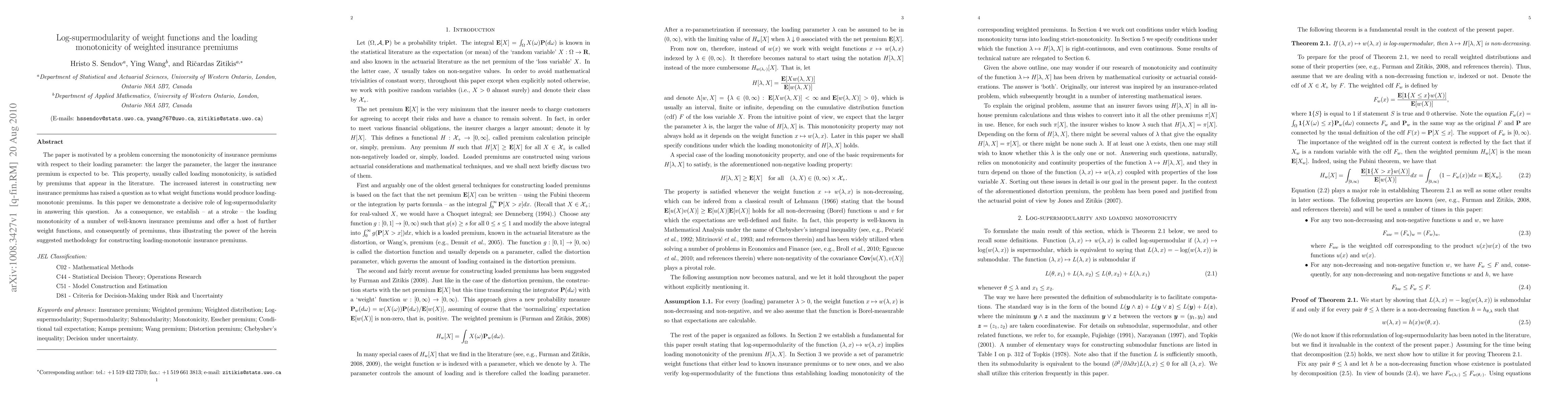 This paper explores the role of log-supermodularity in weight functions to ensure loading monotonicity in insurance premiums, demonstrating that such properties lead to premiums that increase with the loading parameter. It establishes the loading monotonicity of several existing premiums and proposes new weight functions for constructing such premiums.
