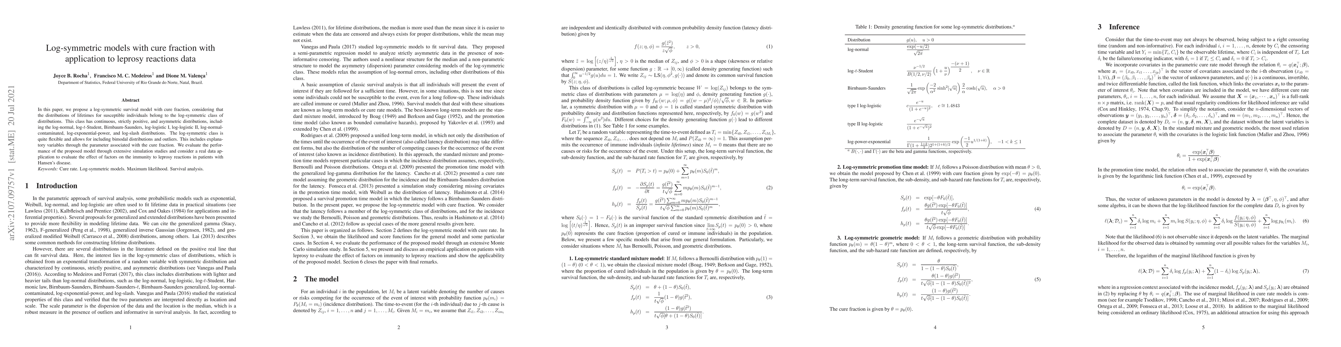 This paper introduces a log-symmetric survival model with a cure fraction to analyze lifetime data, particularly for leprosy reactions in patients with Hansen's disease. The model accommodates continuous, strictly positive, and asymmetric distributions, including various log-symmetric distributions, and is evaluated through simulations and a real-data application.