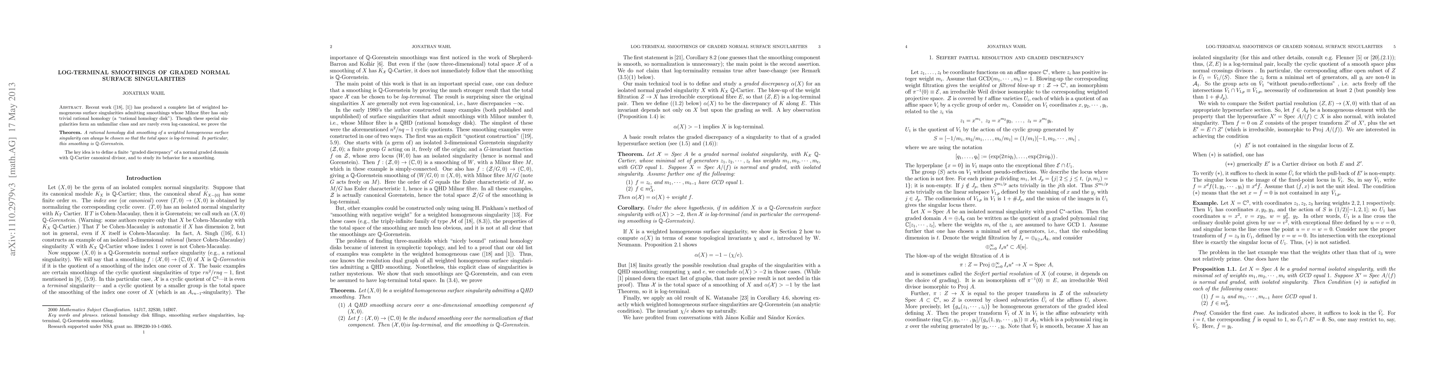 This paper proves that any weighted homogeneous surface singularity with a rational homology disk smoothing can be refined to a log-terminal smoothing, making it $\Q$-Gorenstein. The key technique involves defining a graded discrepancy for normal graded domains with $\Q$-Cartier canonical divisors.