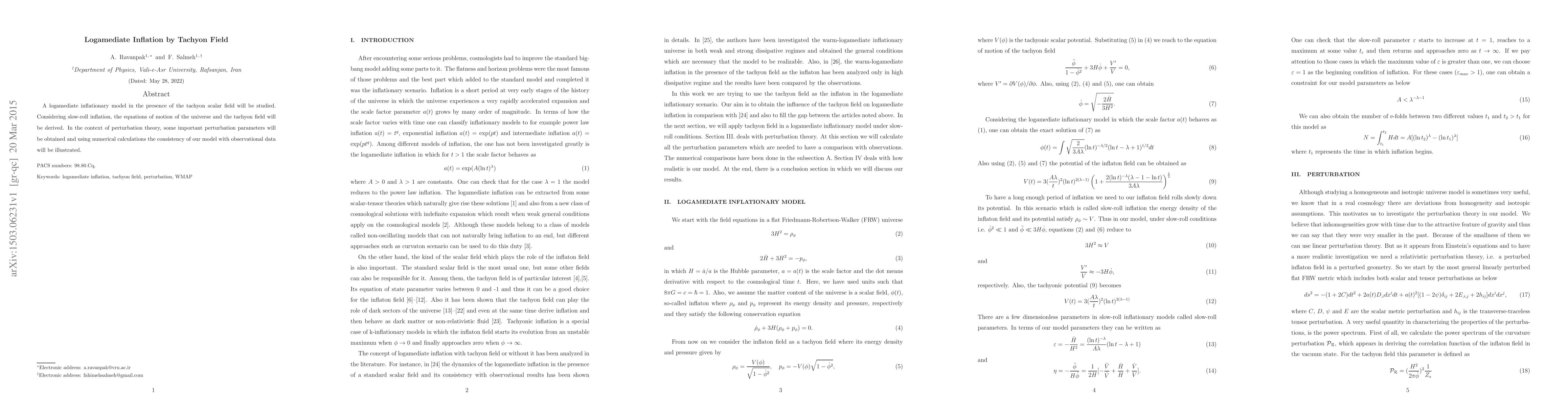 This paper explores a logamediate inflationary model incorporating a tachyon scalar field, deriving relevant equations and examining their consistency with observational data through numerical calculations and perturbation theory. The study aims to validate the model's viability in explaining cosmological inflation.