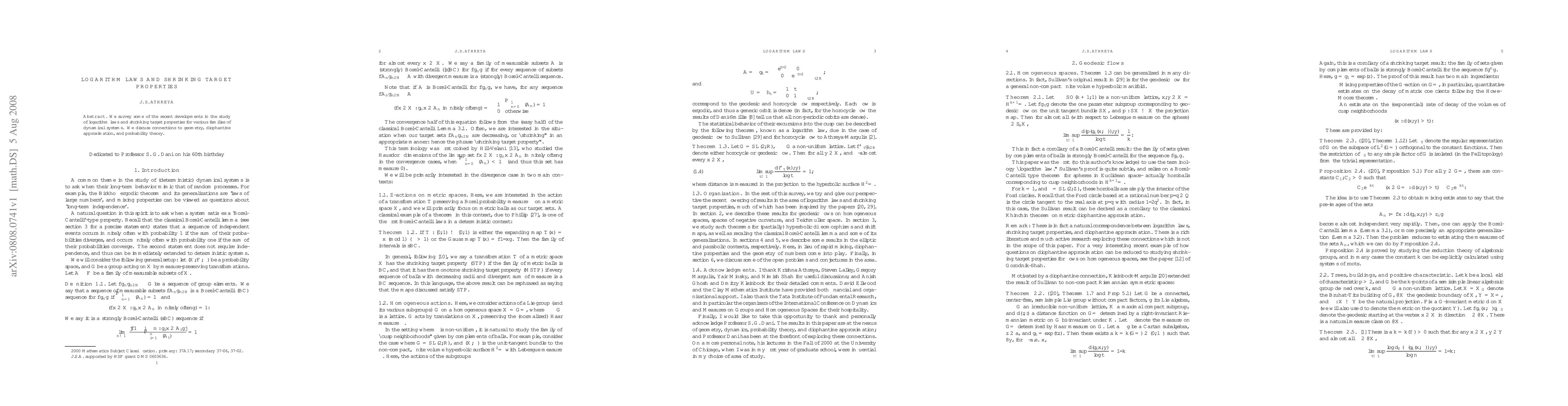 This paper surveys recent advancements in understanding logarithm laws and shrinking target properties across various dynamical systems, highlighting their links to geometry, diophantine approximation, and probability theory.