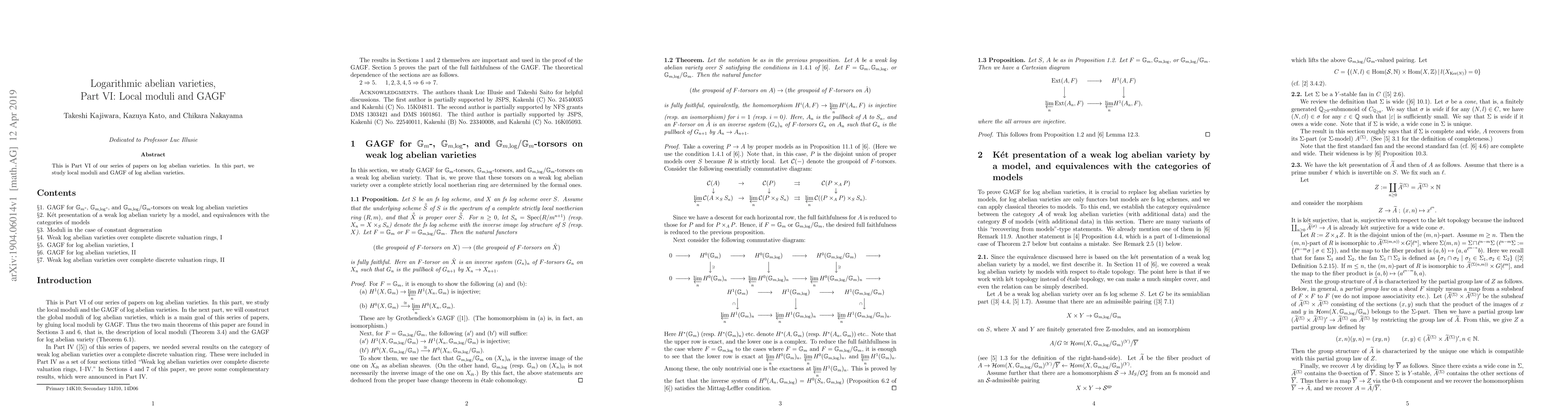 This paper explores local moduli spaces and the Galois action on fundamental groups (GAF) of log abelian varieties, contributing to the broader study of their structure and properties.
