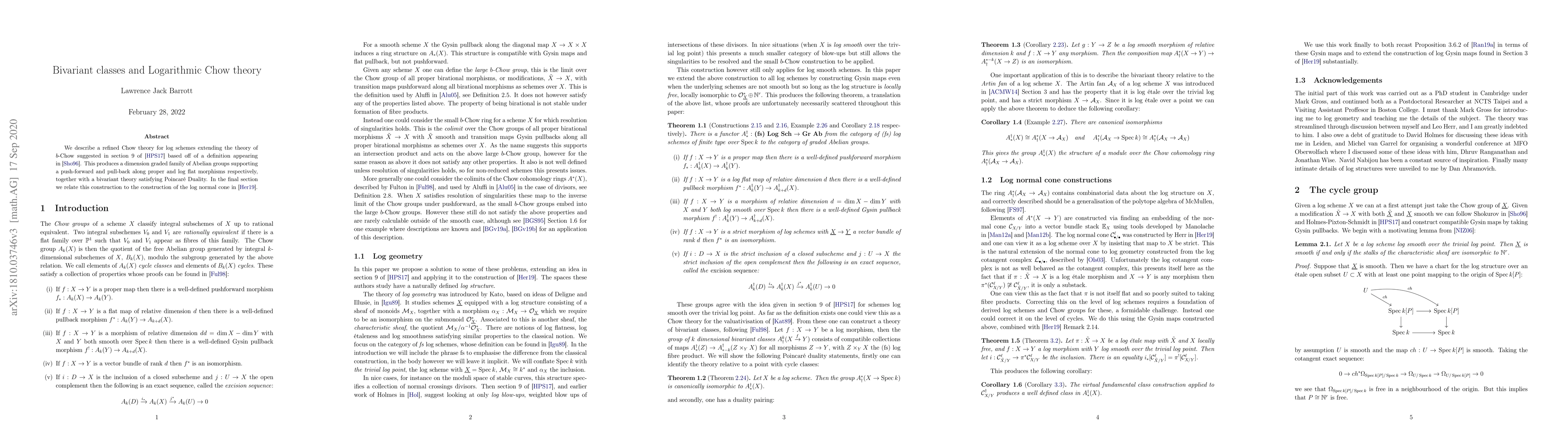 Summary: This paper develops a refined logarithmic Chow theory for log schemes, extending the b-Chow theory and supporting dimension-graded Abelian groups with push-forward and pull-back operations, alongside a bivariant theory that satisfies Poincaré Duality. It also connects this construction to the log normal cone framework.