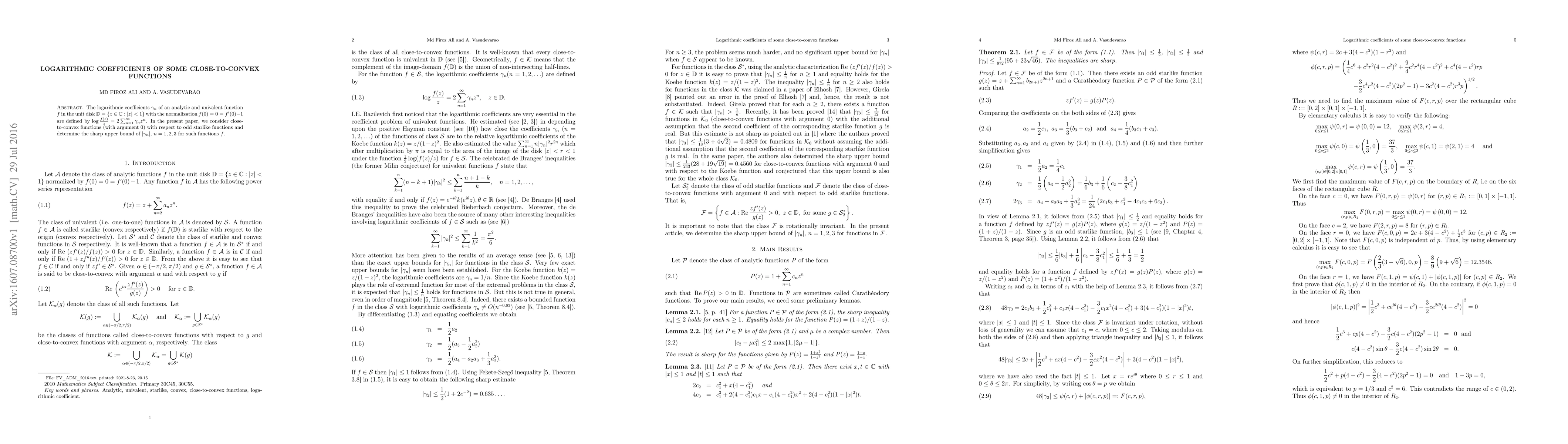 This paper investigates the logarithmic coefficients $\gamma_n$ of close-to-convex functions in the unit disk, normalized by $f(0)=0$ and $f'(0)=1$. It determines the precise upper bounds for $|\gamma_n|$, $n=1,2,3$, for these functions relative to odd starlike functions.