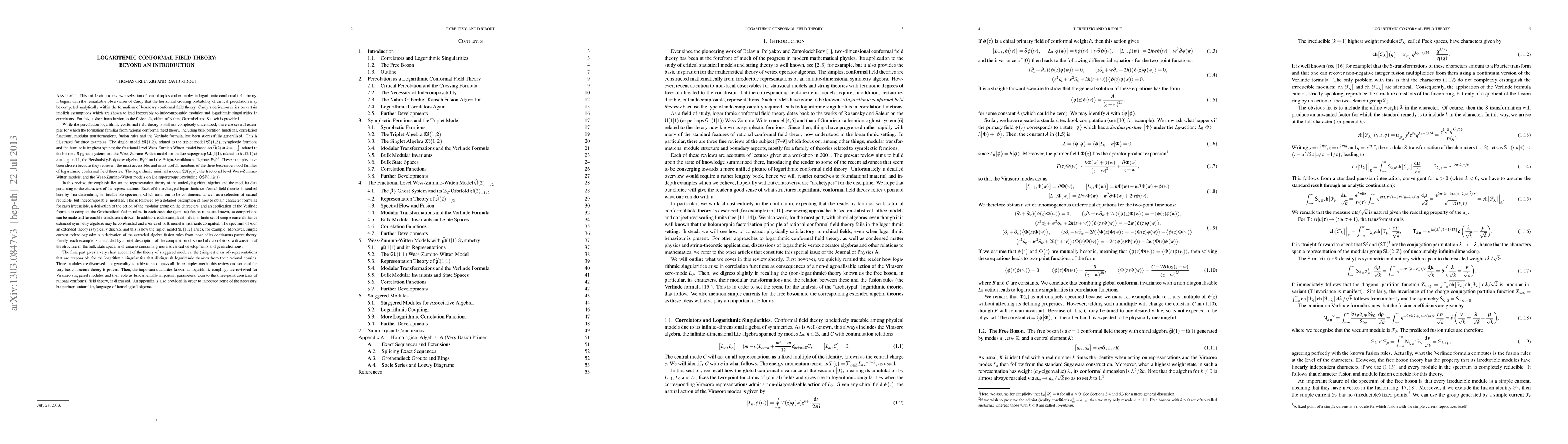 This paper reviews central topics in logarithmic conformal field theory, including critical percolation, symplectic fermions, and fractional level WZW models, emphasizing continuum methods and modular properties of characters. It proposes a strategy for understanding more general logarithmic CFTs and discusses bulk modular invariants and correlation function computation.