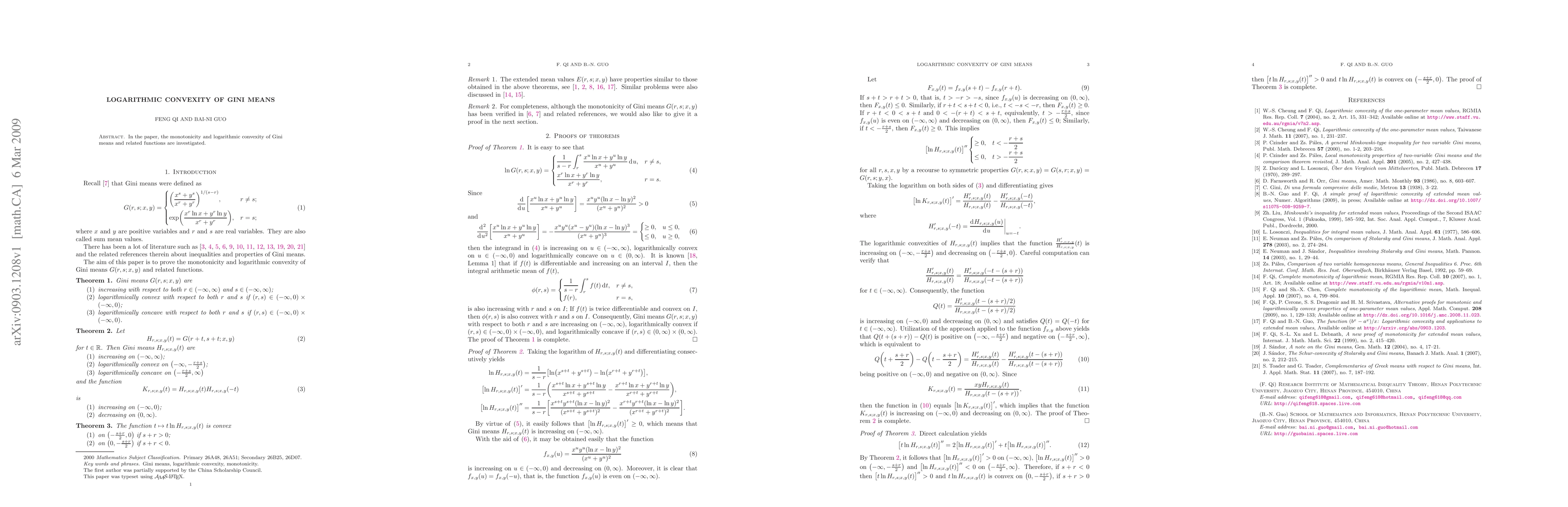 Summary: This paper explores the monotonicity and establishes the logarithmic convexity of Gini means, providing insights into their mathematical properties and behavior.