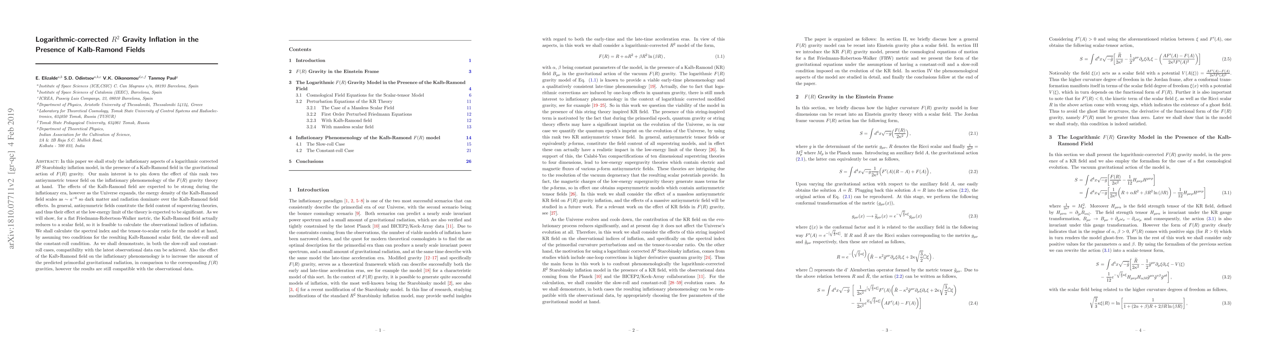 In this paper we shall study the inflationary aspects of a logarithmic corrected $R^2$ Starobinsky inflation model, in the presence of a Kalb-Ramond field in the gravitational action of $F(R)$ gravity. Our main interest is to pin down the effect of this rank two antisymmetric tensor field on the inflationary phenomenology of the $F(R)$ gravity theory at hand. The effects of the Kalb-Ramond field are expected to be strong during the inflationary era, however as the Universe expands, the energy density of the Kalb-Ramond field scales as $\sim a^{-6}$ so dark matter and radiation dominate over the Kalb-Ramond field effects. In general, antisymmetric fields constitute the field content of superstring theories, and thus their effect at the low-energy limit of the theory is expected to be significant. As we will show, for a flat Friedmann-Robertson-Walker metric, the Kalb-Ramond field actually reduces to a scalar field, so it is feasible to calculate the observational indices of inflation. We shall calculate the spectral index and the tensor-to-scalar ratio for the model at hand, by assuming two conditions for the resulting Kalb-Ramond scalar field, the slow-roll and the constant-roll condition. As we shall demonstrate, in both the slow-roll and constant-roll cases, compatibility with the latest observational data can be achieved. Also the effect of the Kalb-Ramond field on the inflationary phenomenology is to increase the amount of the predicted primordial gravitational radiation, in comparison to the corresponding $f(R)$ gravities, however the results are still compatible with the observational data.