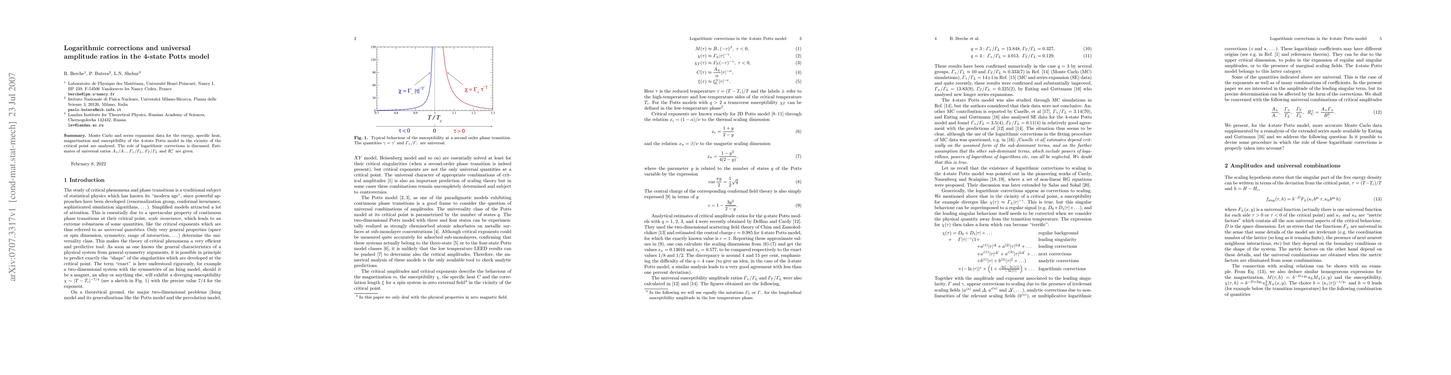 This paper analyzes Monte Carlo and series expansion data for the 4-state Potts model near its critical point, focusing on the impact of logarithmic corrections. It provides estimates for universal amplitude ratios, including A_+/A_-, $\Gamma_+/\Gamma_L$, $\Gamma_T/\Gamma_L$, and R_c^+.