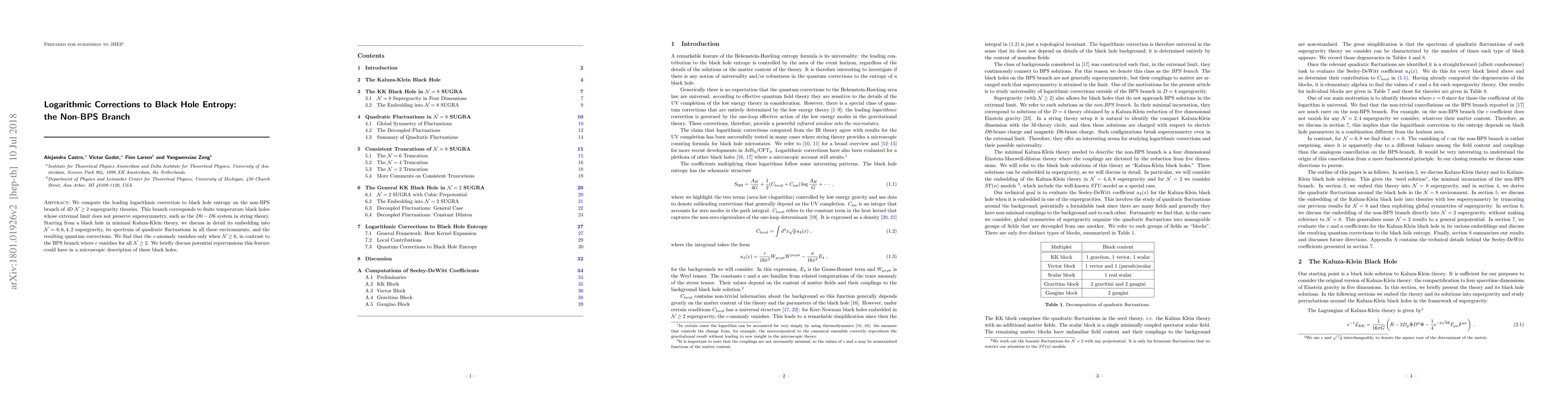 We compute the leading logarithmic correction to black hole entropy on the non-BPS branch of 4D ${\cal N}\geq 2$ supergravity theories. This branch corresponds to finite temperature black holes whose extremal limit does not preserve supersymmetry, such as the $D0-D6$ system in string theory. Starting from a black hole in minimal Kaluza-Klein theory, we discuss in detail its embedding into ${\cal N}=8, 6, 4, 2$ supergravity, its spectrum of quadratic fluctuations in all these environments, and the resulting quantum corrections. We find that the $c$-anomaly vanishes only when ${\cal N}\geq 6$, in contrast to the BPS branch where $c$ vanishes for all ${\cal N}\geq 2$. We briefly discuss potential repercussions this feature could have in a microscopic description of these black holes.