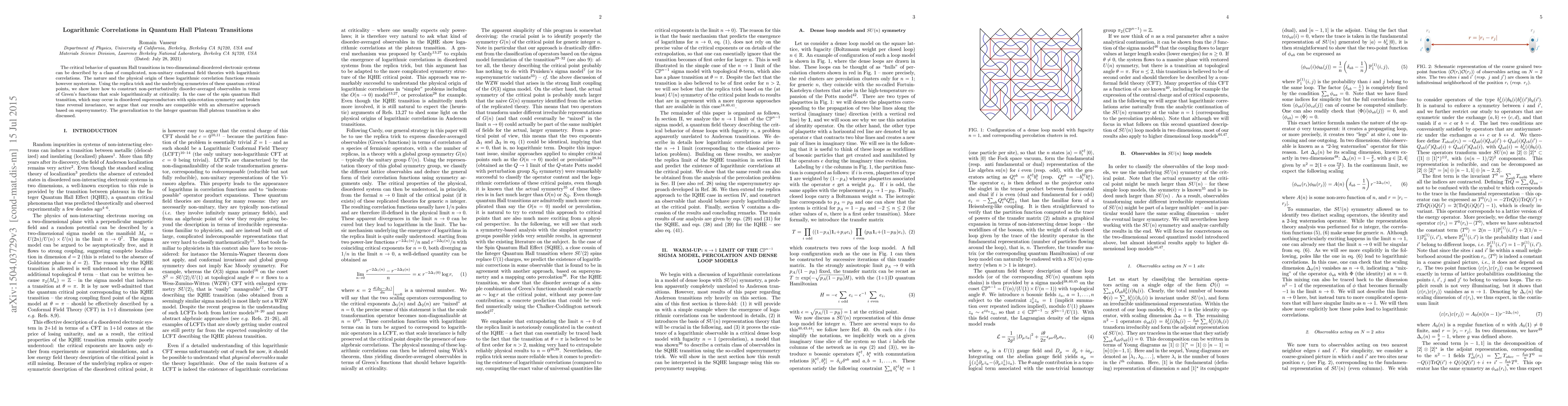 This paper explores the critical behavior of quantum Hall transitions in disordered systems, revealing the presence of logarithmic correlations in non-unitary conformal field theories. The authors construct non-perturbative disorder-averaged observables and discuss their applicability to spin quantum Hall transitions in disordered superconductors, suggesting compatibility with supersymmetric approaches.