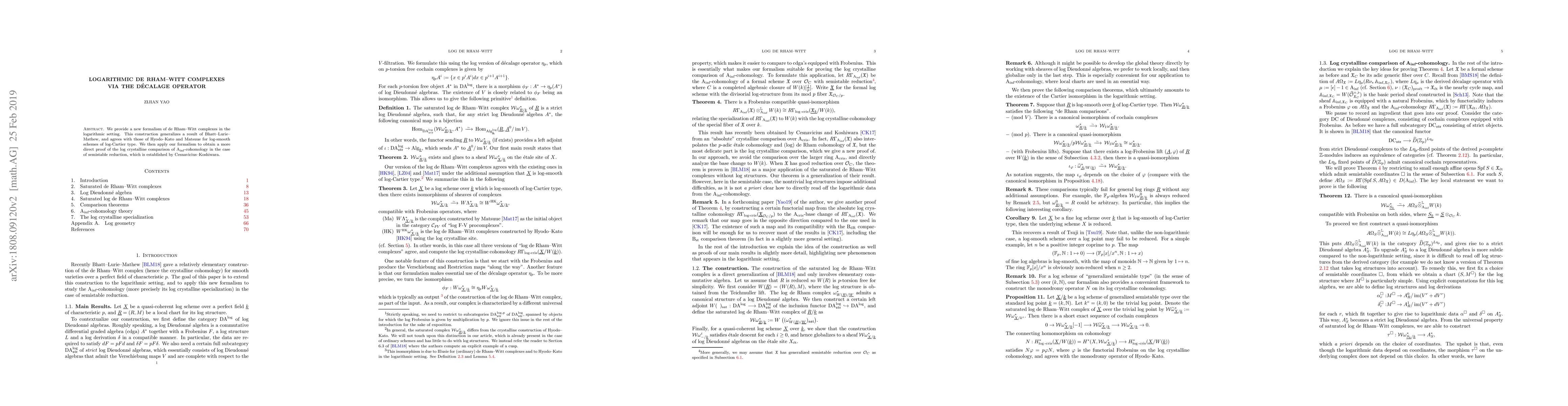 The introduction of a new formalism for logarithmic de Rham--Witt complexes, extending previous work and providing a comprehensive framework for logarithmic geometry.