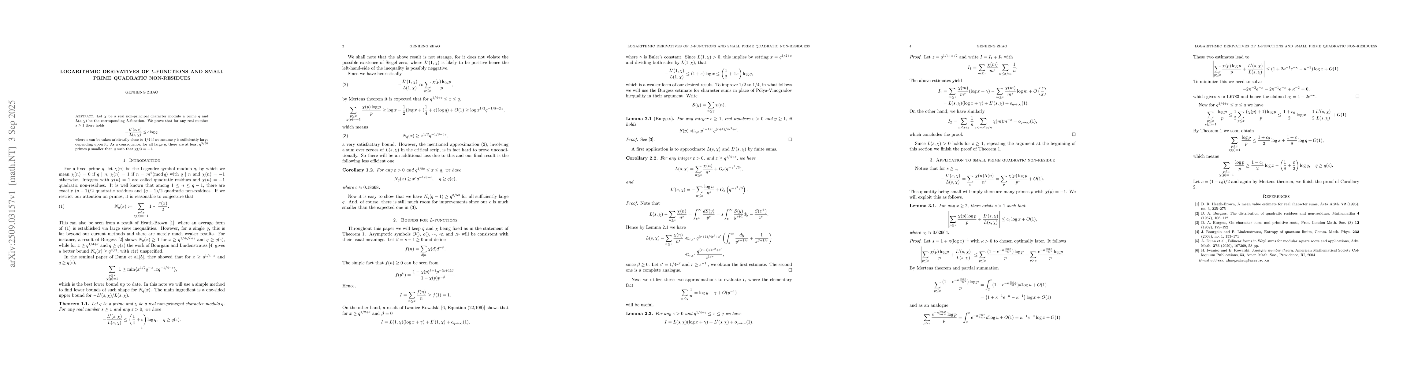 Let $\chi$ be a real non-principal character modulo a prime $q$ and $L(s,\chi)$ be the corresponding $L$-function. We prove that for any real number $s\geq 1$ there holds $$ -\frac{L'(s,\chi )}{L(s,\chi)}\leq c \log q,$$ where $c$ can be taken arbitrarily close to $1/4$ if we assume $q$ is sufficiently large depending upon it. As a consequence, for all large $q$, there are at least $q^{3/50}$ primes $p$ smaller than $q$ such that $\chi(p)=-1$.