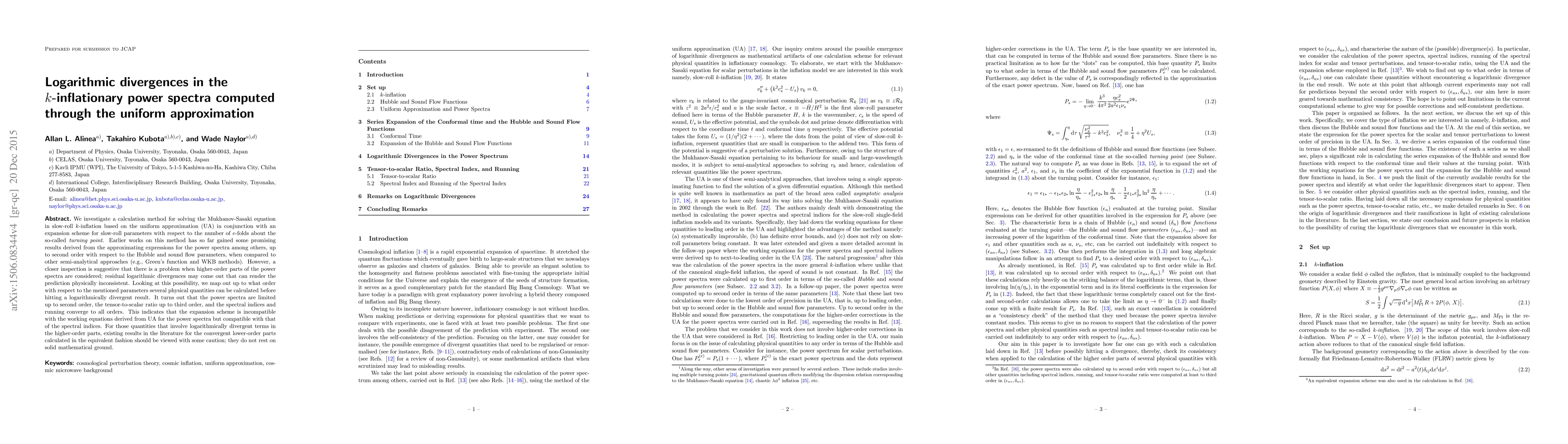 We investigate a calculation method for solving the Mukhanov-Sasaki equation in slow-roll $k$-inflation based on the uniform approximation (UA) in conjunction with an expansion scheme for slow-roll parameters with respect to the number of $e$-folds about the so-called \textit{turning point}. Earlier works on this method has so far gained some promising results derived from the approximating expressions for the power spectra among others, up to second order with respect to the Hubble and sound flow parameters, when compared to other semi-analytical approaches (e.g., Green's function and WKB methods). However, a closer inspection is suggestive that there is a problem when higher-order parts of the power spectra are considered; residual logarithmic divergences may come out that can render the prediction physically inconsistent. Looking at this possibility, we map out up to what order with respect to the mentioned parameters several physical quantities can be calculated before hitting a logarithmically divergent result. It turns out that the power spectra are limited up to second order, the tensor-to-scalar ratio up to third order, and the spectral indices and running converge to all orders. This indicates that the expansion scheme is incompatible with the working equations derived from UA for the power spectra but compatible with that of the spectral indices. For those quantities that involve logarithmically divergent terms in the higher-order parts, existing results in the literature for the convergent lower-order parts calculated in the equivalent fashion should be viewed with some caution; they do not rest on solid mathematical ground.