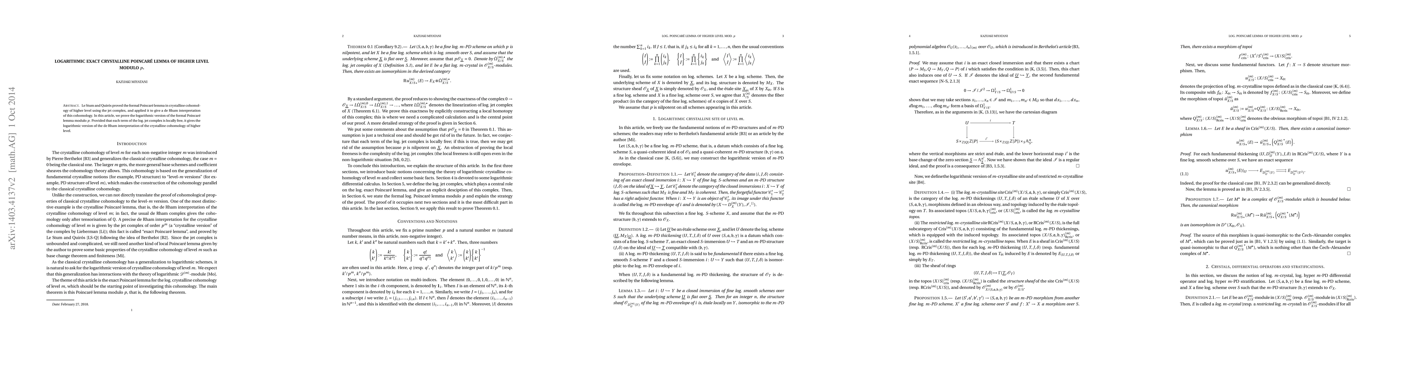 This paper proves the logarithmic version of the formal Poincaré lemma modulo p, extending previous results by Le Stum and Quirós on crystalline cohomology. It ensures a de Rham interpretation of crystalline cohomology at a higher level using the logarithmic jet complex, assuming local freeness of each term.
