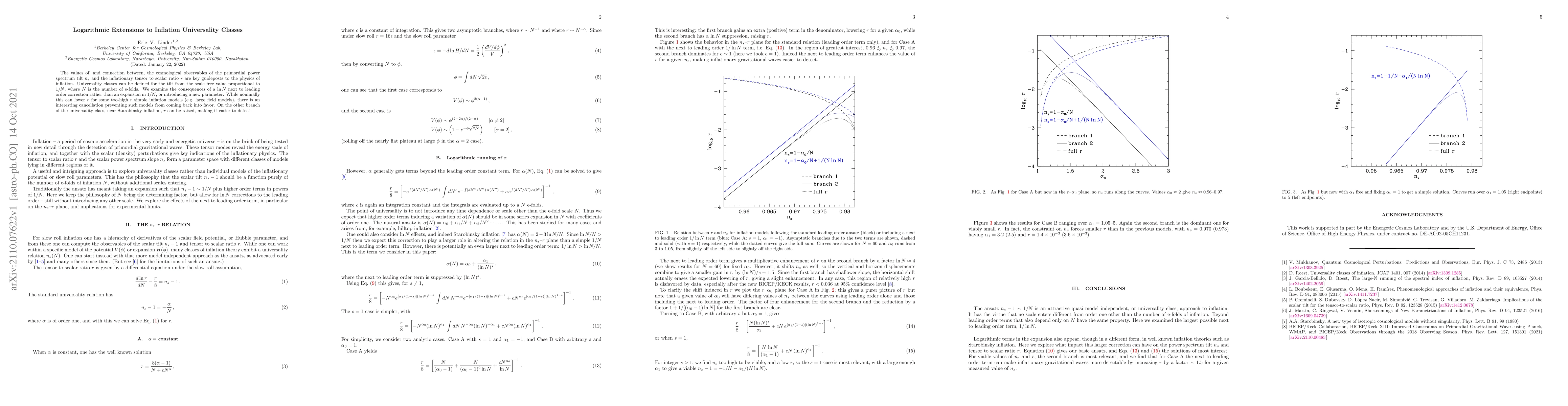 The values of, and connection between, the cosmological observables of the primordial power spectrum tilt $n_s$ and the inflationary tensor to scalar ratio $r$ are key guideposts to the physics of inflation. Universality classes can be defined for the tilt from the scale free value proportional to $1/N$, where $N$ is the number of e-folds. We examine the consequences of a $\ln N$ next to leading order correction rather than an expansion in $1/N$, or introducing a new parameter. While nominally this can lower $r$ for some too-high $r$ simple inflation models (e.g. large field models), there is an interesting cancellation preventing such models from coming back into favor. On the other branch of the universality class, near Starobinsky inflation, $r$ can be raised, making it easier to detect.
