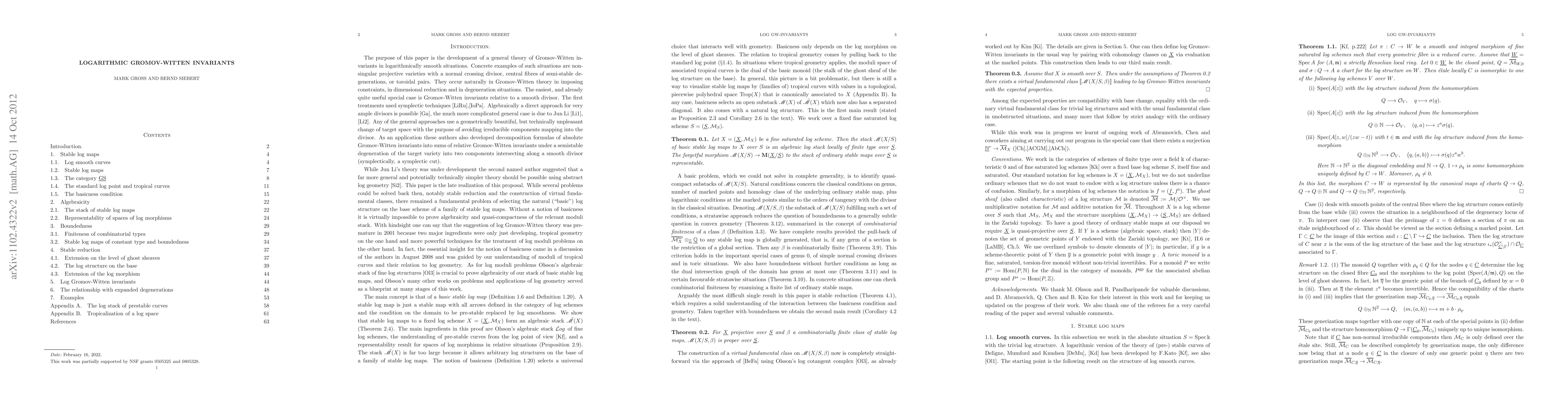 This paper develops a comprehensive theory of logarithmic Gromov-Witten invariants, extending the relative Gromov-Witten theory, and proves the algebraicity of the stack of stable log curves over target spaces with a log structure. It establishes that the stack of basic stable log maps is proper under certain conditions, leading to a robust framework for log Gromov-Witten invariants.