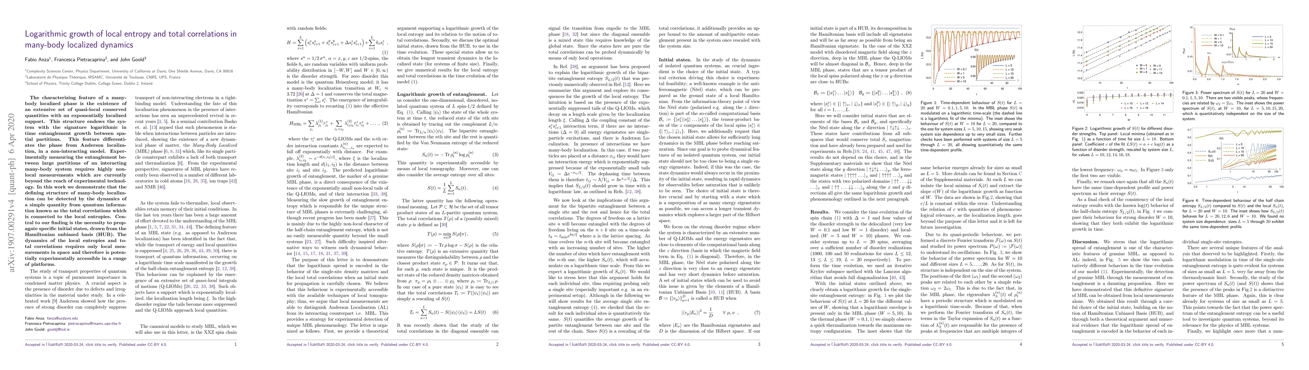 This paper investigates the logarithmic growth of local entropy and total correlations in many-body localized systems, showing that these dynamics can be detected through local measurements. The study highlights that the total correlations, linked to local entropy, can reveal the defining structure of many-body localization, offering a potentially experimentally accessible method.