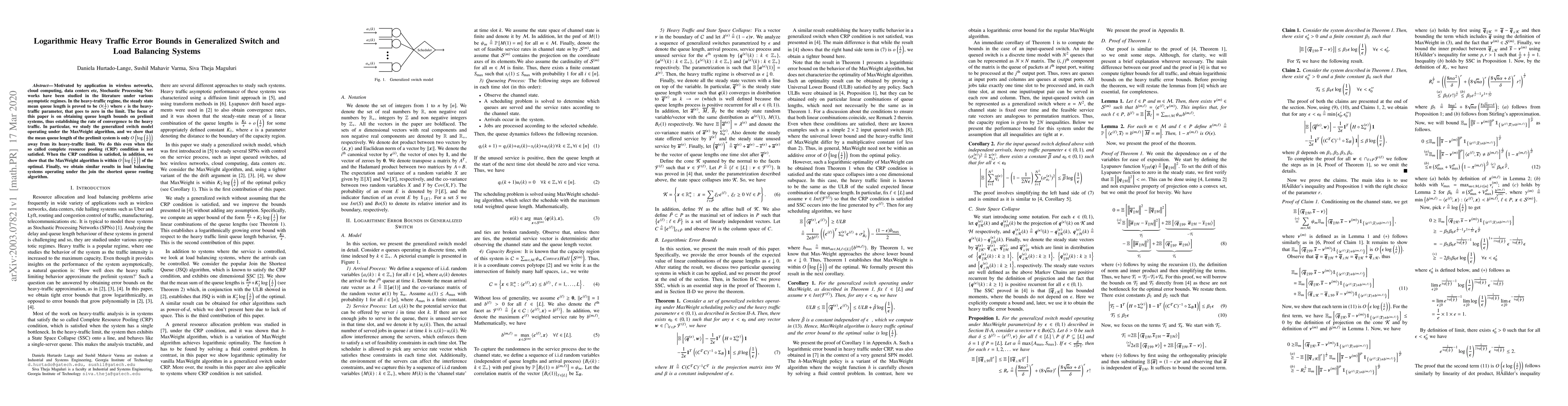 This research paper establishes error bounds for queue length in generalized switch and load balancing systems under heavy-traffic conditions, finding that mean queue lengths converge at a logarithmic rate to their heavy-traffic limits.