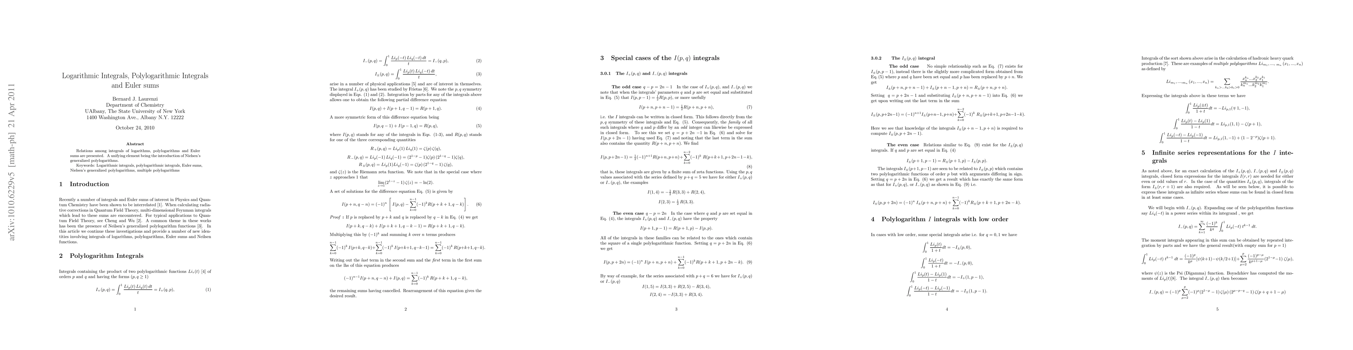 Relations among integrals of logarithms, polylogarithms and Euler sums are presented. A unifying element being the introduction of Nielsen's generalized polylogarithms.