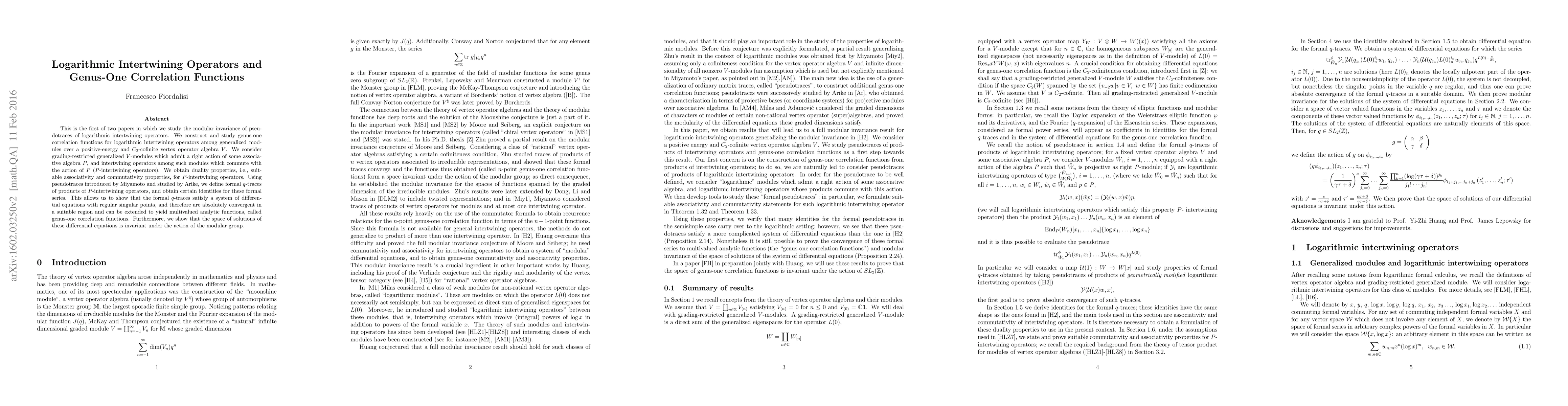 This paper introduces genus-one correlation functions for logarithmic intertwining operators in vertex operator algebras, establishing duality properties and proving modular invariance of pseudotraces, ultimately showing that these functions are multivalued analytic and invariant under the modular group.