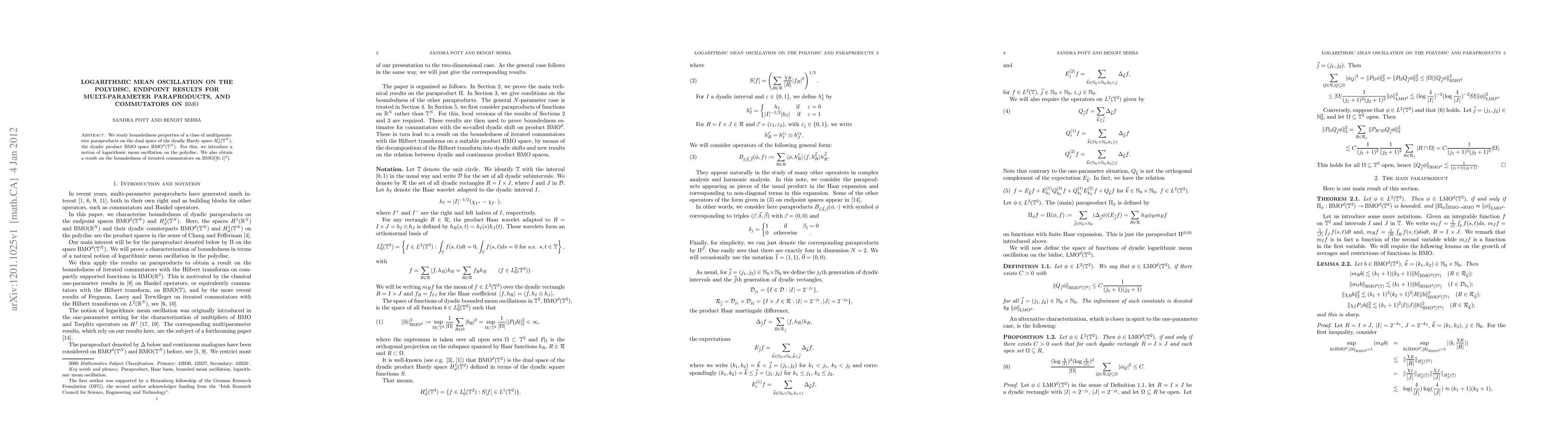 This paper investigates the boundedness of multi-parameter paraproducts on the dyadic Hardy and BMO spaces, introducing a logarithmic mean oscillation on the polydisc. It also establishes results on the boundedness of iterated commutators on the BMO space for the square domain.