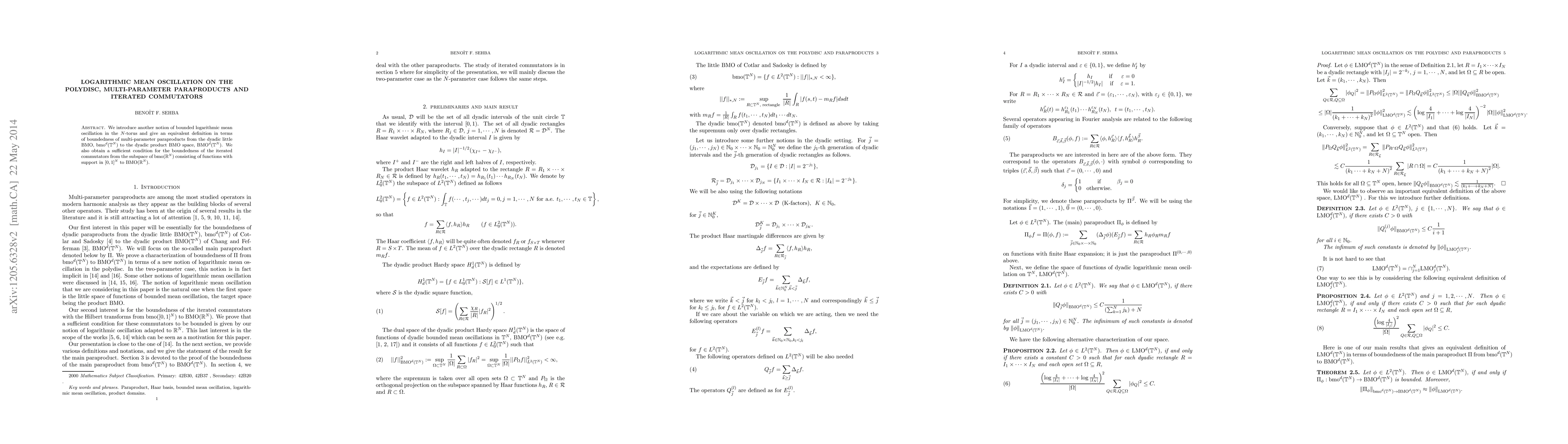 We introduce another notion of bounded logarithmic mean oscillation in the N-torus and give an equivalent definition in terms of boundedness of multi-parameter paraproducts from the dyadic little BMO of Cotlar-Sadosky to the product BMO of Chang-Fefferman. We also obtain a sufficient condition for the boundedness of iterated commutators with Hilbert transforms betweeen the strong notions of these two spaces.