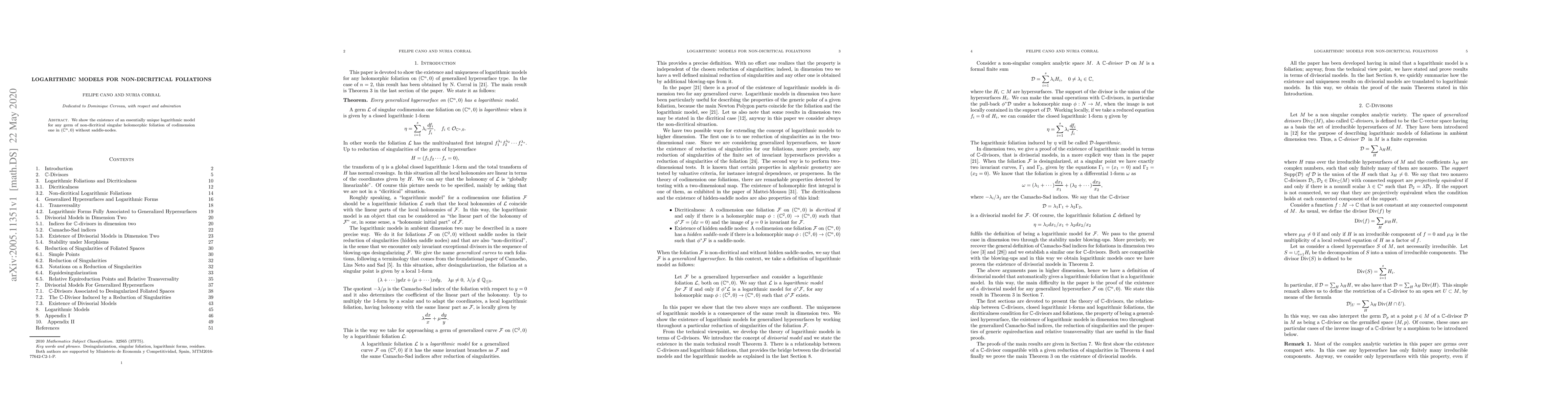 Researchers prove the existence of a unique logarithmic model for non-dicritical foliations in complex space, offering new insights into the structure of singular holomorphic foliations.