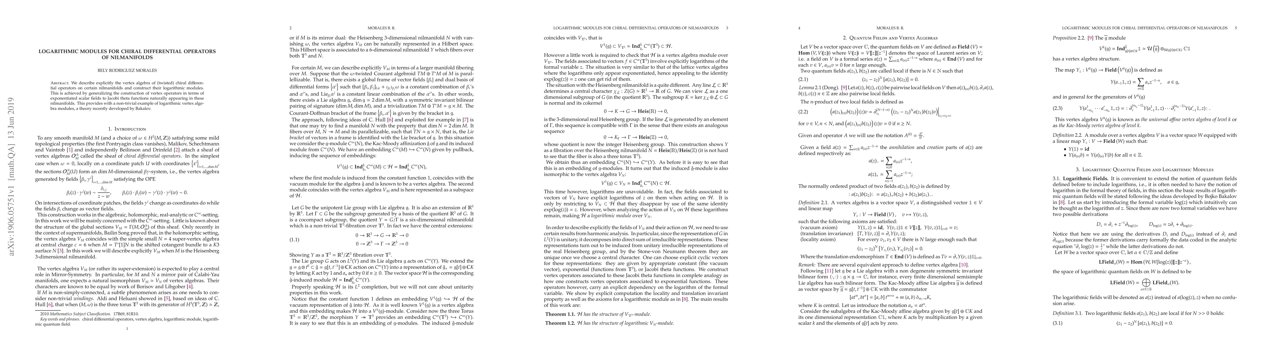 We describe explicitly the vertex algebra of (twisted) chiral differential operators on certain nilmanifolds and construct their logarithmic modules. This is achieved by generalizing the construction of vertex operators in terms of exponentiated scalar fields to Jacobi theta functions naturally appearing in these nilmanifolds. This provides with a non-trivial example of logarithmic vertex algebra modules, a theory recently developed by Bakalov.