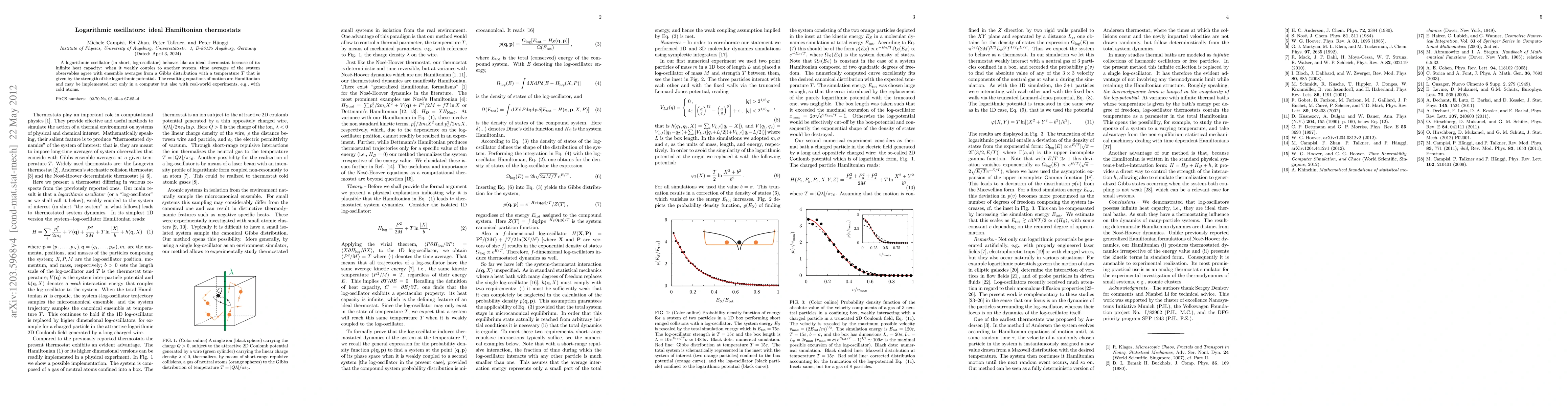 A logarithmic oscillator (in short, log-oscillator) behaves like an ideal thermostat because of its infinite heat capacity: when it weakly couples to another system, time averages of the system observables agree with ensemble averages from a Gibbs distribution with a temperature T that is given by the strength of the logarithmic potential. The resulting equations of motion are Hamiltonian and may be implemented not only in a computer but also with real-world experiments, e.g., with cold atoms.