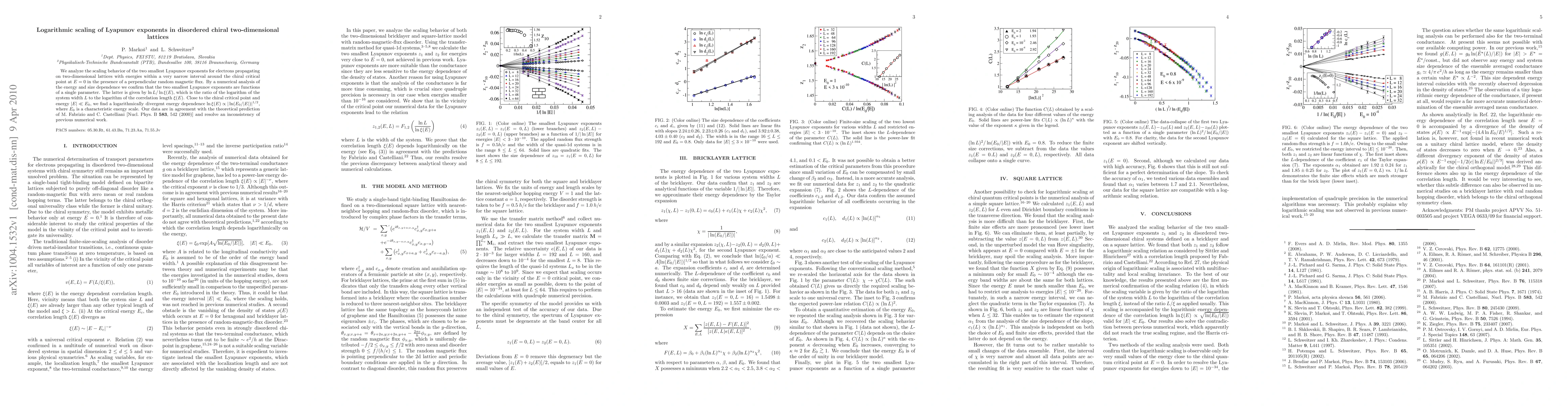 Researchers analyzed Lyapunov exponents in disordered 2D lattices near a chiral critical point and found that the two smallest exponents scale logarithmically with energy, resolving an earlier inconsistency.