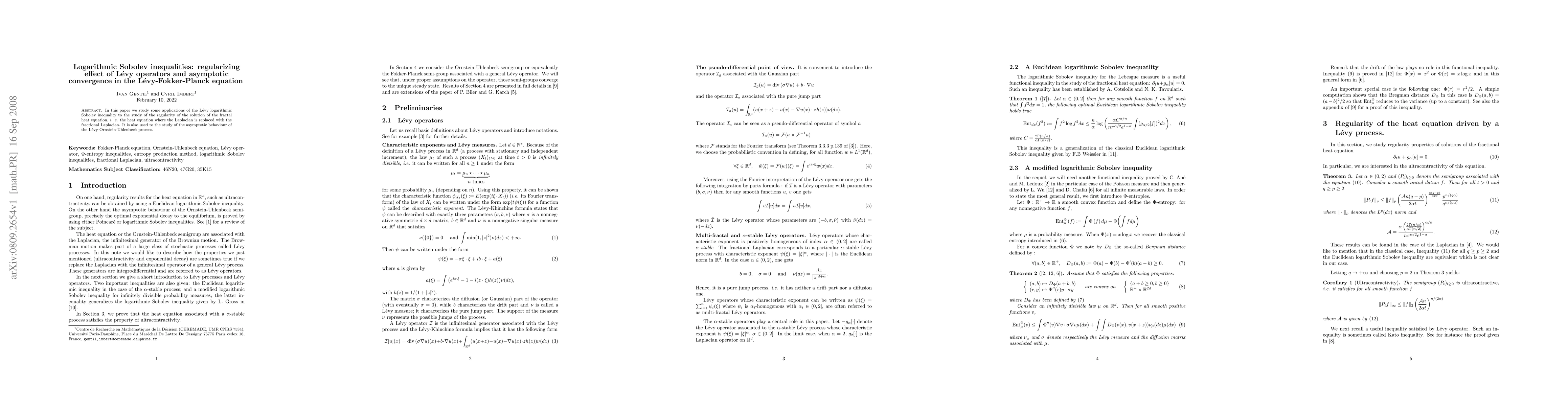 In this paper we study some applications of the L\'evy logarithmic Sobolev inequality to the study of the regularity of the solution of the fractal heat equation, i. e. the heat equation where the Laplacian is replaced with the fractional Laplacian. It is also used to the study of the asymptotic behaviour of the L\'evy-Ornstein-Uhlenbeck process.