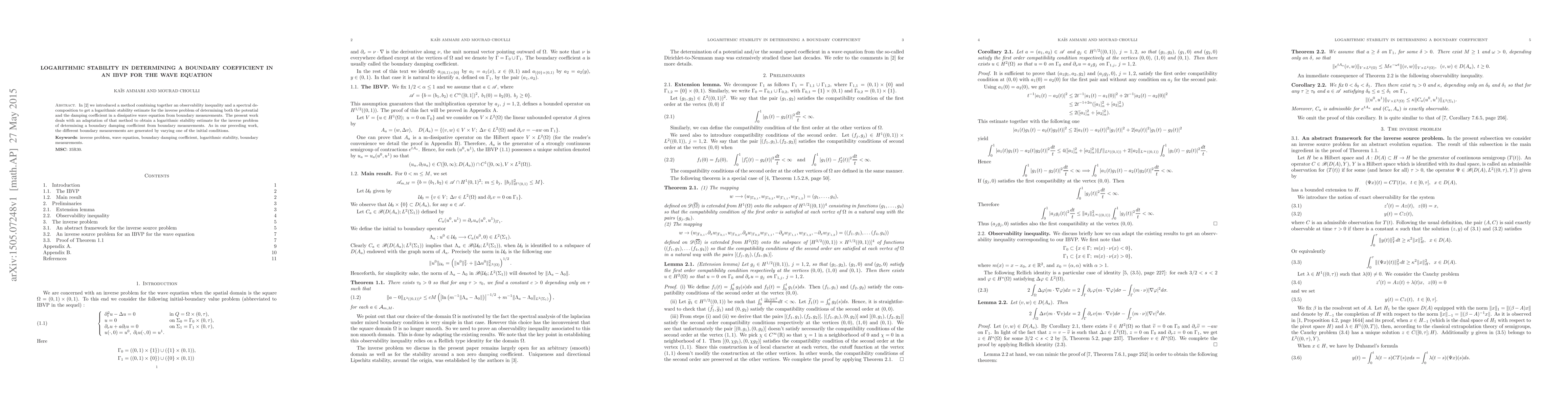 This paper adapts a method from a previous study to achieve logarithmic stability estimates for determining a boundary damping coefficient in a dissipative wave equation, using boundary measurements generated by varying one of the initial conditions. The approach combines observability inequalities and spectral decomposition.