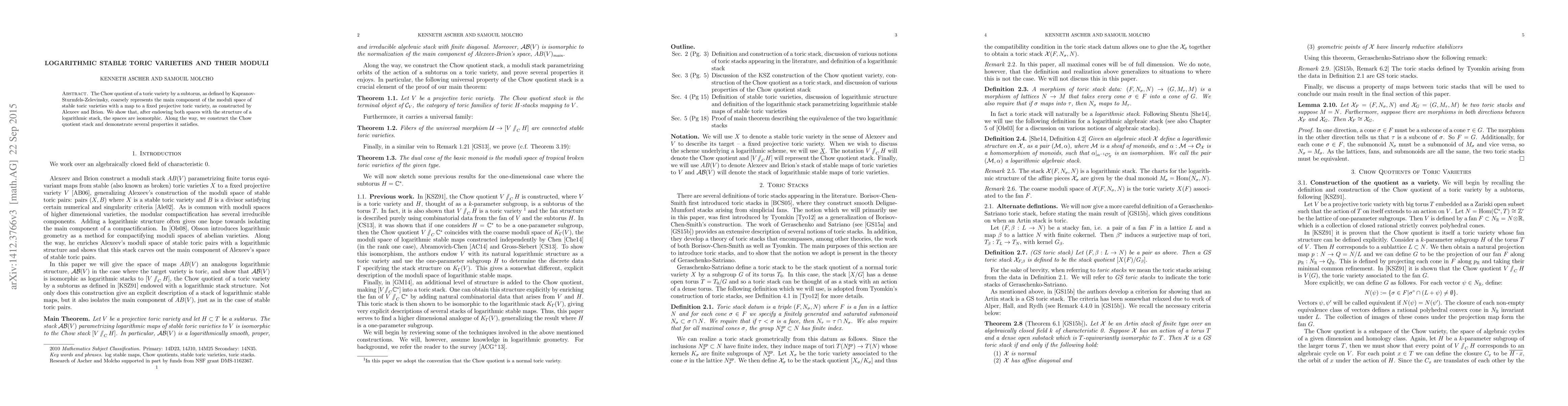 The Chow quotient of a toric variety by a subtorus, as defined by Kapranov-Sturmfels-Zelevinsky, coarsely represents the main component of the moduli space of stable toric varieties with a map to a fixed projective toric variety, as constructed by Alexeev and Brion. We show that, after endowing both spaces with the structure of a logarithmic stack, the resulting spaces are isomorphic. Along the way, we construct the Chow quotient stack and demonstrate several properties that it satisfies.