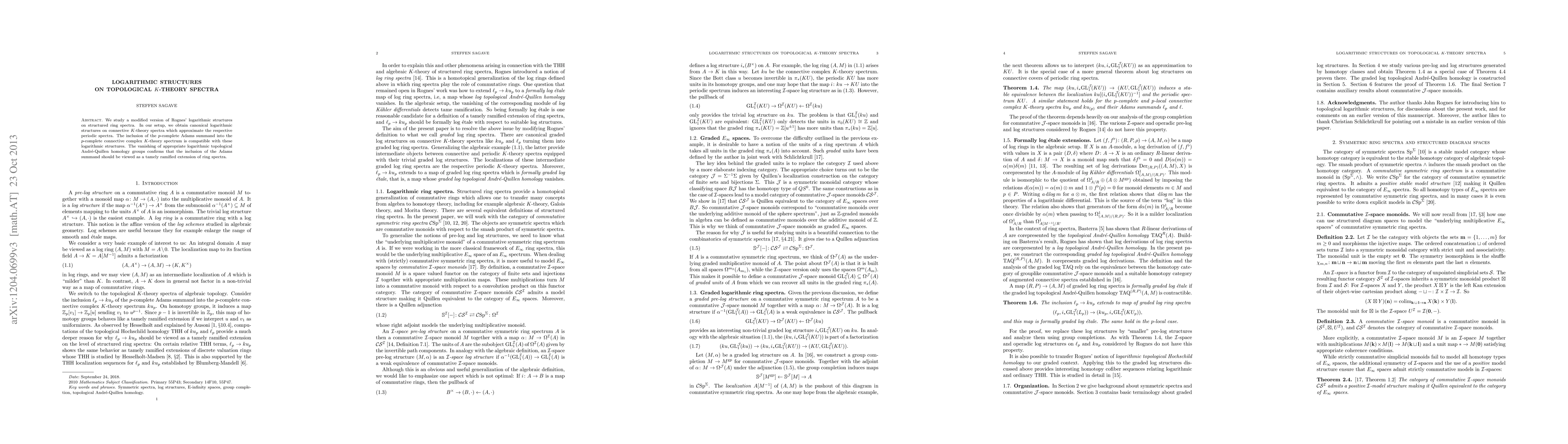 This paper introduces canonical logarithmic structures on connective K-theory spectra that approximate periodic spectra, confirming that the inclusion of the p-complete Adams summand into connective complex K-theory is a tamely ramified extension, as evidenced by vanishing logarithmic topological Andre-Quillen homology groups.