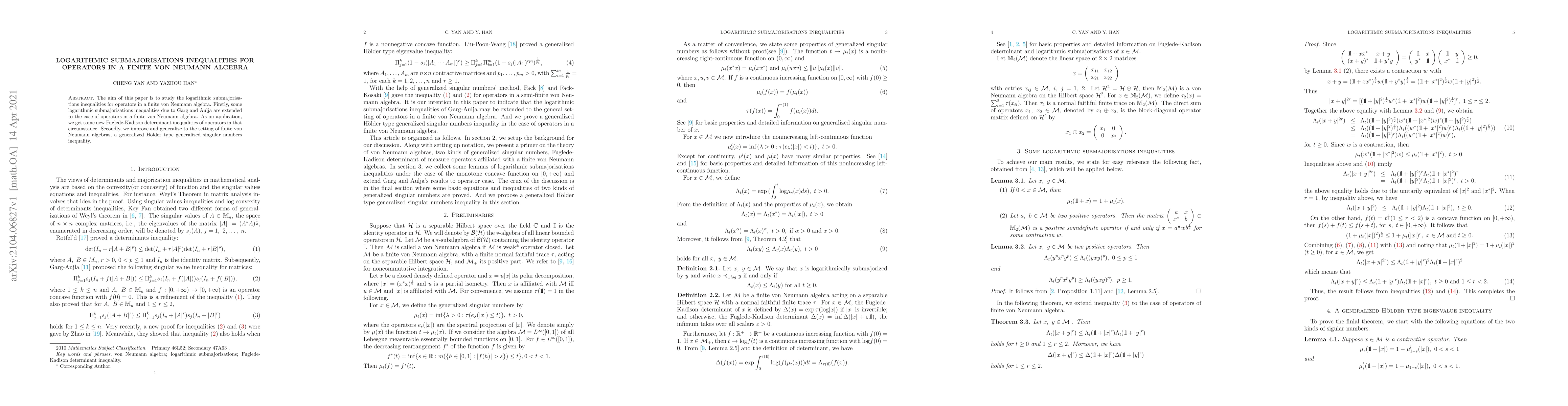 This paper extends logarithmic submajorisation inequalities to operators in a finite von Neumann algebra, deriving new Fuglede-Kadison determinant inequalities and improving a generalized Hölder type singular numbers inequality in this setting.