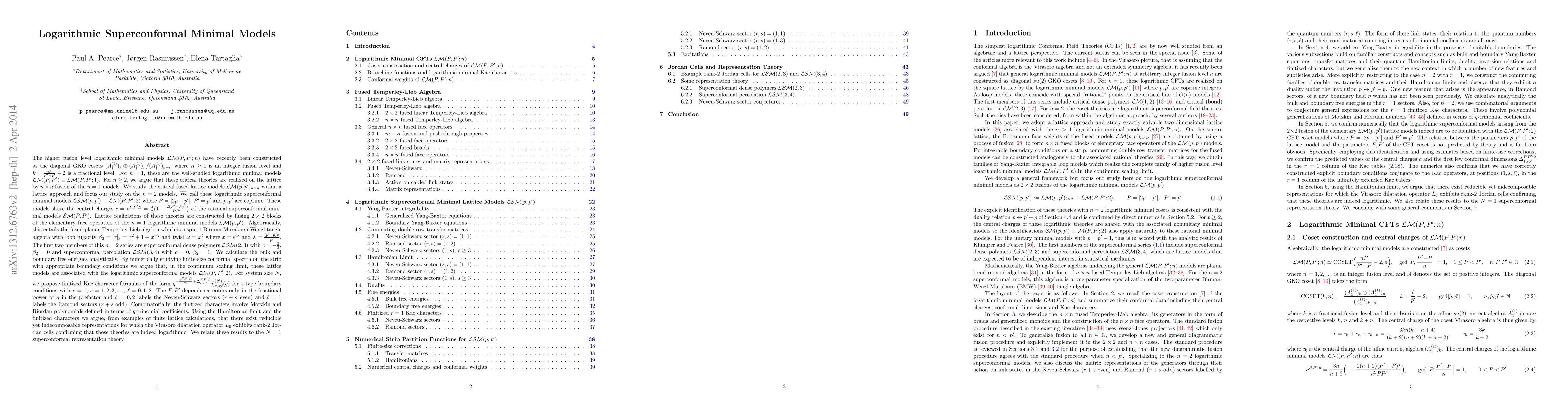 This research constructs higher fusion level logarithmic minimal models, specifically logarithmic superconformal minimal models LSM(p,p'), which share central charges with rational superconformal minimal models. It analytically calculates their free energies and numerically demonstrates their continuum scaling limit association with logarithmic superconformal models LM(P,P';2), proposing finitized Kac character formulas involving Motzkin and Riordan polynomials, and confirming their logarithmic nature via rank-2 Jordan blocks in the Virasoro dilatation operator.
