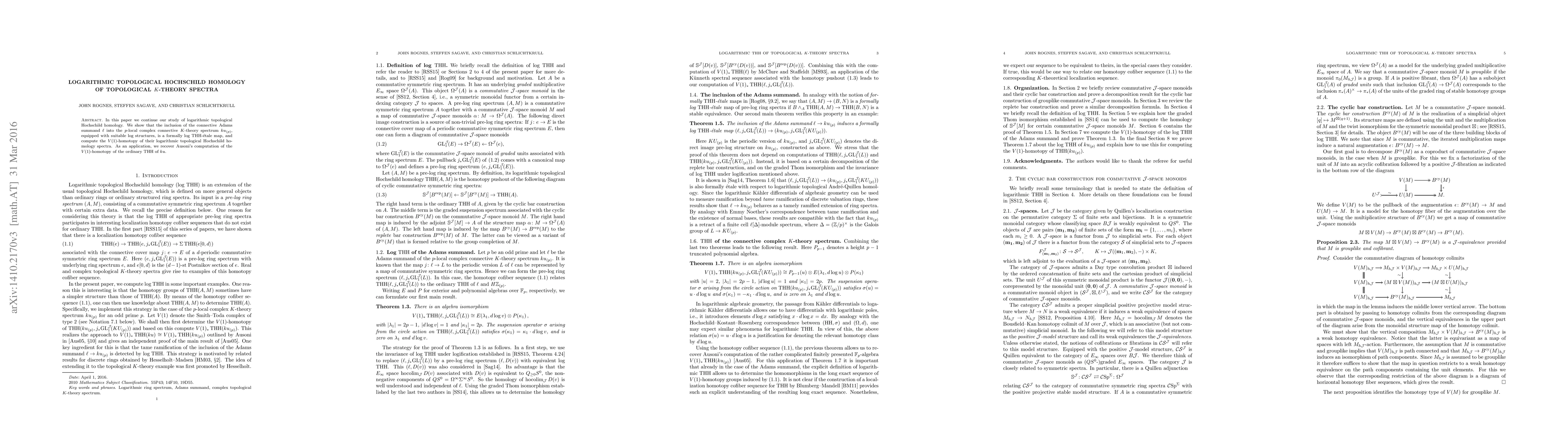 In this paper we continue our study of logarithmic topological Hochschild homology. We show that the inclusion of the connective Adams summand into the p-local complex connective K-theory spectrum, equipped with suitable log structures, is a formally log THH-etale map, and compute the V(1)-homotopy of their logarithmic topological Hochschild homology spectra. As an application, we recover Ausoni's computation of the V(1)-homotopy of the ordinary THH of ku.