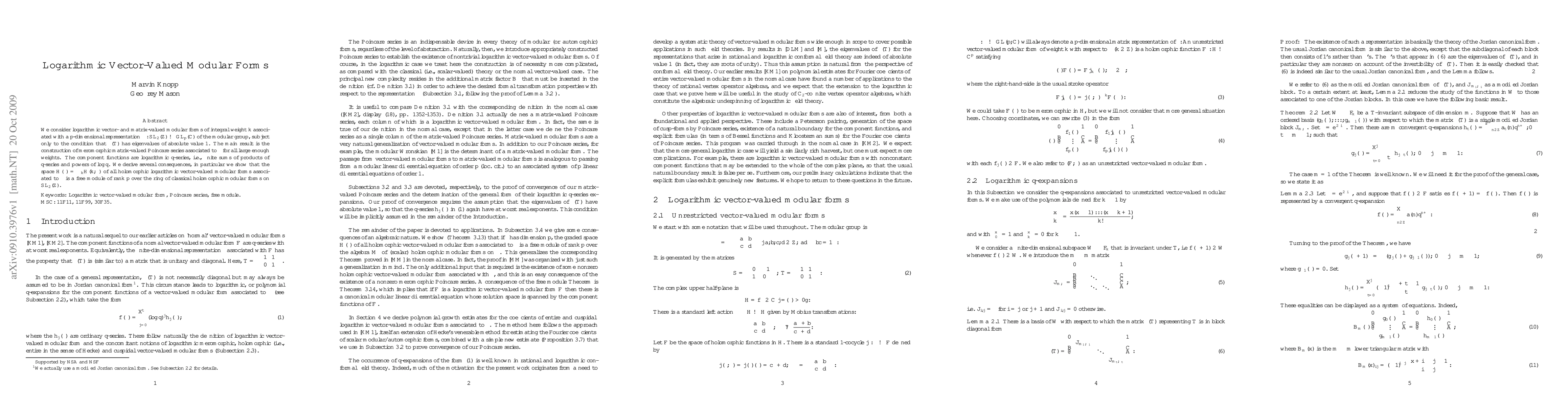 This paper explores logarithmic vector- and matrix-valued modular forms associated with $p$-dimensional representations of the modular group, constructing meromorphic matrix-valued Poincaré series for sufficiently large weights. It demonstrates that the space of all holomorphic logarithmic vector-valued modular forms forms a free module over the ring of classical holomorphic modular forms.