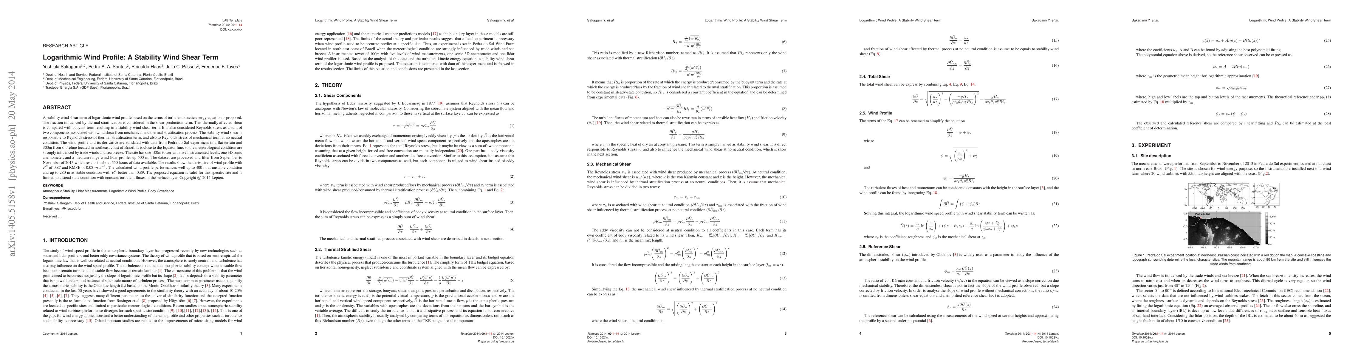 This research proposes a stability wind shear term using logarithmic wind profile, validated with data from Pedra do Sal, Brazil. The term accounts for thermal stratification's influence and performs well in predicting wind profile up to 400m under unstable conditions and 280m under stable conditions.