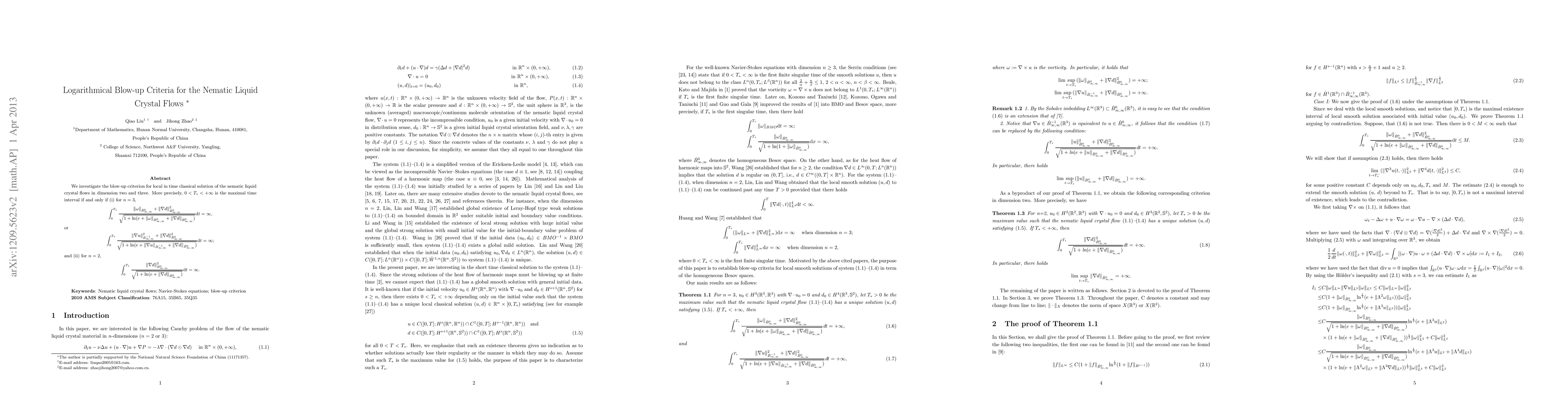 This paper explores blow-up criteria for the classical solutions of nematic liquid crystal flows in two and three dimensions. It establishes that the solution exists only up to a finite time if certain integral conditions involving the norms of velocity and order parameter gradients diverge logarithmically.