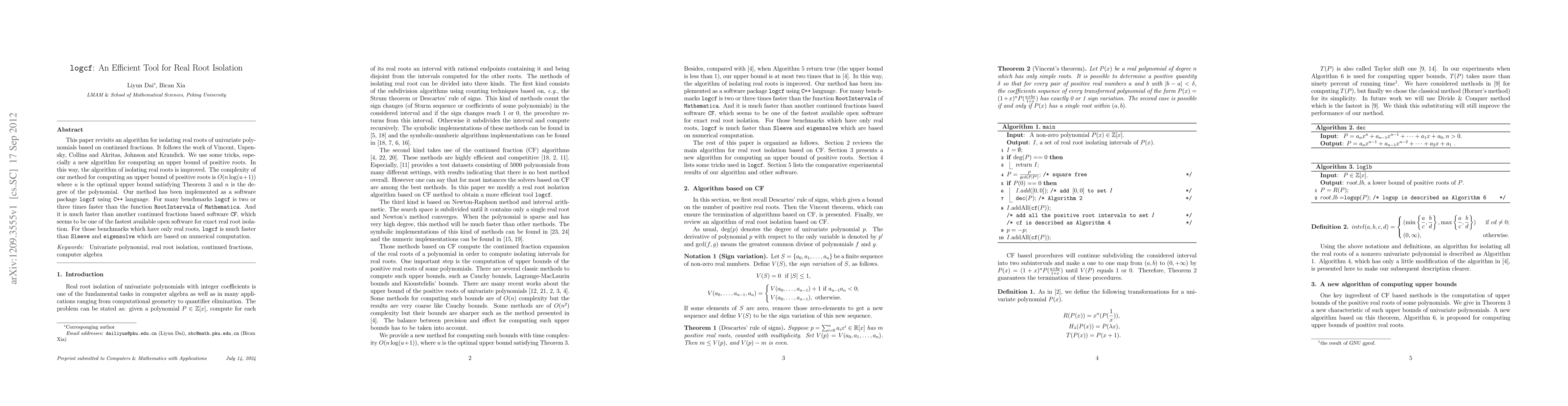 This paper introduces logcf, an efficient algorithm for isolating real roots of univariate polynomials using continued fractions, which improves upon existing methods with a new upper bound computation technique. The software implementation, logcf, outperforms other tools like Mathematica's RootIntervals and CF in speed, especially for polynomials with real roots.
