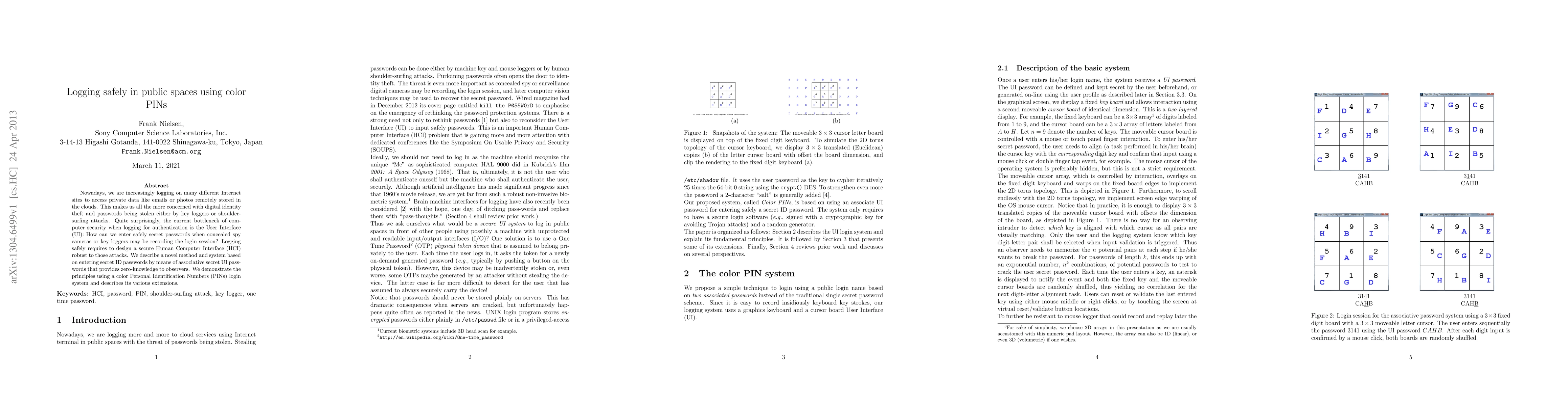 Nowadays, we are increasingly logging on many different Internet sites to access private data like emails or photos remotely stored in the clouds. This makes us all the more concerned with digital identity theft and passwords being stolen either by key loggers or shoulder-surfing attacks. Quite surprisingly, the current bottleneck of computer security when logging for authentication is the User Interface (UI): How can we enter safely secret passwords when concealed spy cameras or key loggers may be recording the login session? Logging safely requires to design a secure Human Computer Interface (HCI) robust to those attacks. We describe a novel method and system based on entering secret ID passwords by means of associative secret UI passwords that provides zero-knowledge to observers. We demonstrate the principles using a color Personal Identification Numbers (PINs) login system and describes its various extensions.
