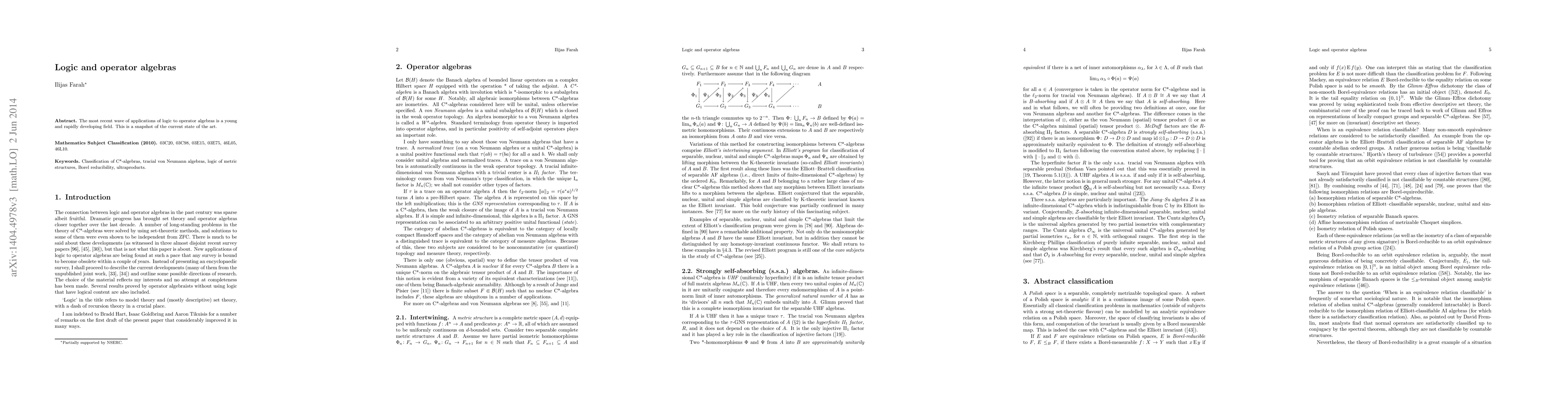 It offers insights into the current state of this young field, summarizing its methodology and implications for the intersection of logic and operator algebra research.