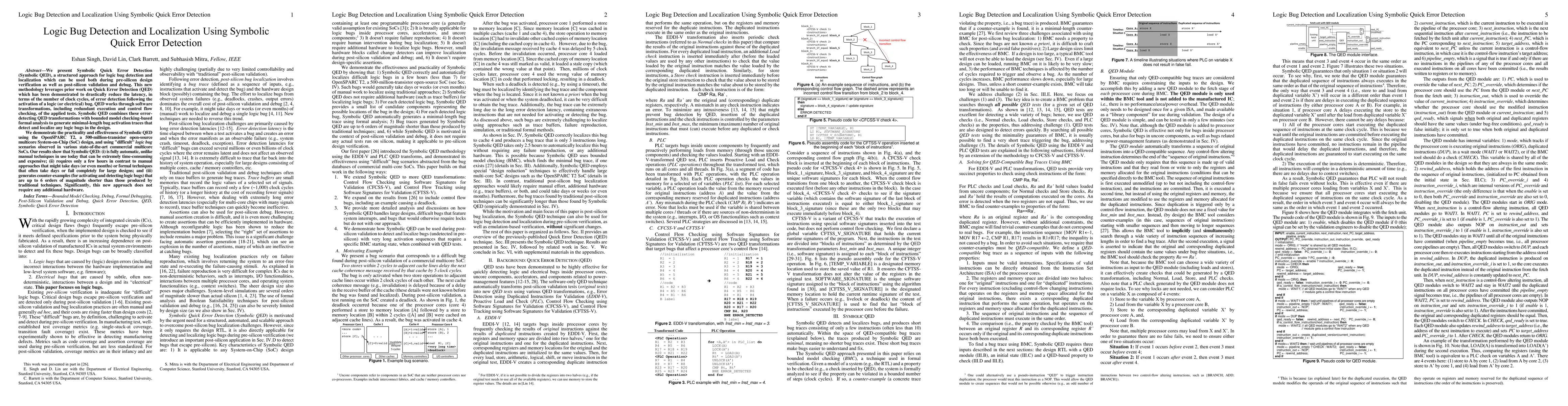This paper introduces Symbolic Quick Error Detection (Symbolic QED), a method for automating logic bug detection and localization during design verification and post-silicon validation. It combines Quick Error Detection transformations with formal analysis to generate minimal bug activation traces, demonstrating significant speed and efficiency improvements over manual and traditional formal techniques.