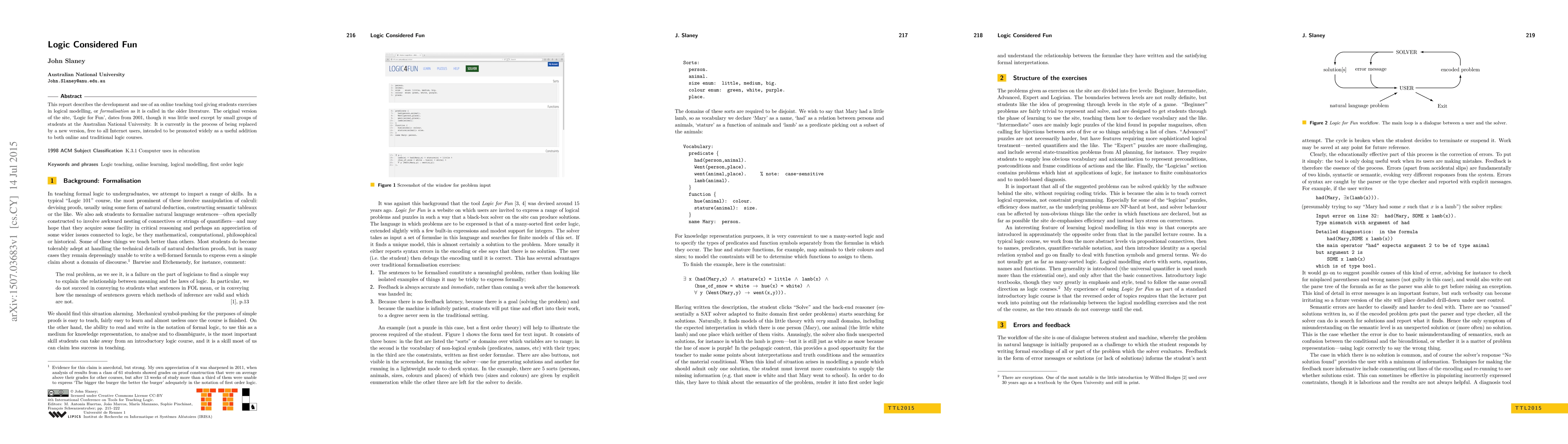 This report describes the development and use of an online teaching tool giving students exercises in logical modelling, or \emph{formalisation} as it is called in the older literature. The original version of the site, `Logic for Fun', dates from 2001, though it was little used except by small groups of students at the Australian National University. It is currently in the process of being replaced by a new version, free to all Internet users, intended to be promoted widely as a useful addition to both online and traditional logic courses.