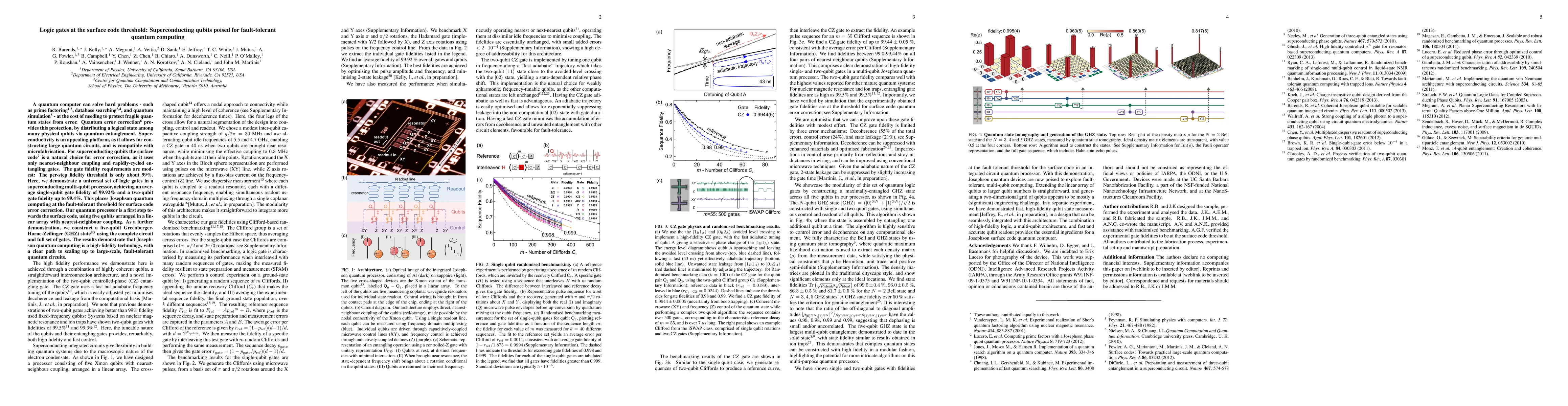 This research demonstrates a universal set of logic gates in a superconducting multi-qubit processor, achieving high gate fidelities (99.92% for single-qubit and up to 99.4% for two-qubit gates), placing Josephson quantum computing at the threshold for fault-tolerant surface code error correction. The findings suggest a scalable path for large-scale quantum circuits.