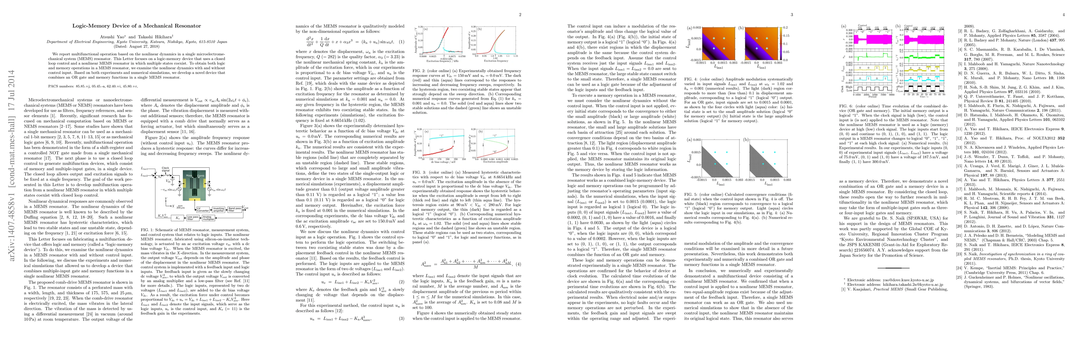 We report multifunctional operation based on the nonlinear dynamics in a single microelectromechanical system (MEMS) resonator. This Letter focuses on a logic-memory device that uses a closed loop control and a nonlinear MEMS resonator in which multiple states coexist. To obtain both logic and memory operations in a MEMS resonator, we examine the nonlinear dynamics with and without control input. Based on both experiments and numerical simulations, we develop a novel device that combines an OR gate and memory functions in a single MEMS resonator.