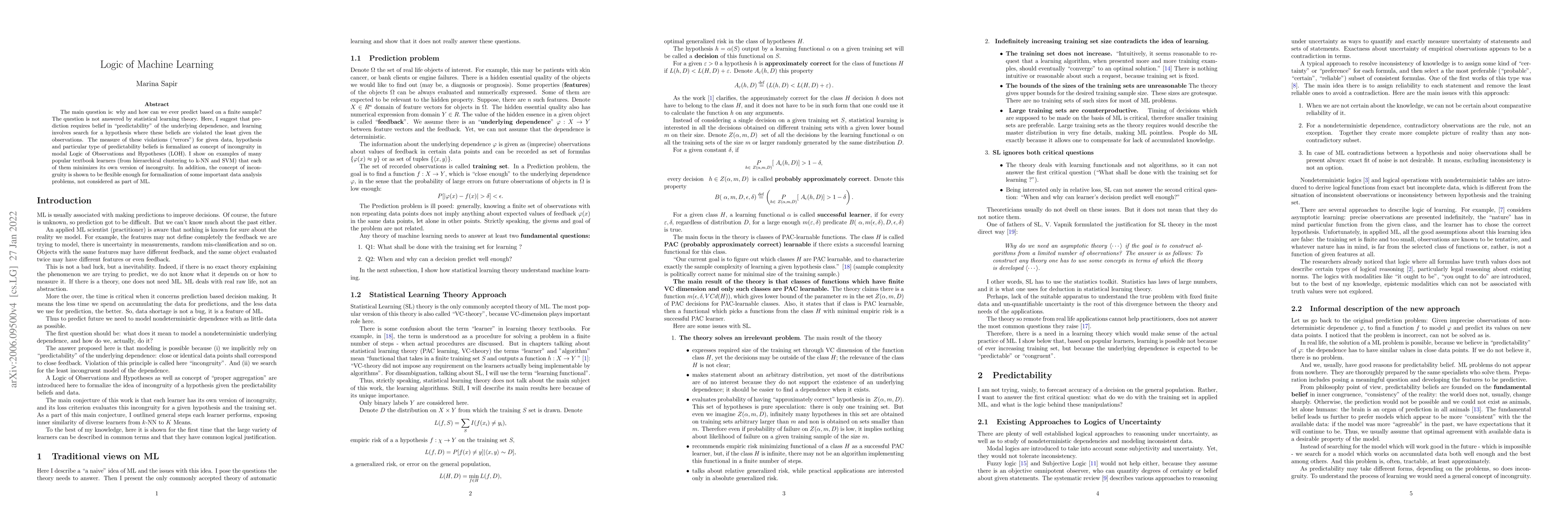 The main question is: why and how can we ever predict based on a finite sample? The question is not answered by statistical learning theory. Here, I suggest that prediction requires belief in "predictability" of the underlying dependence, and learning involves search for a hypothesis where these beliefs are violated the least given the observations. The measure of these violations ("errors") for given data, hypothesis and particular type of predictability beliefs is formalized as concept of incongruity in modal Logic of Observations and Hypotheses (LOH). I show on examples of many popular textbook learners (from hierarchical clustering to k-NN and SVM) that each of them minimizes its own version of incongruity. In addition, the concept of incongruity is shown to be flexible enough for formalization of some important data analysis problems, not considered as part of ML.