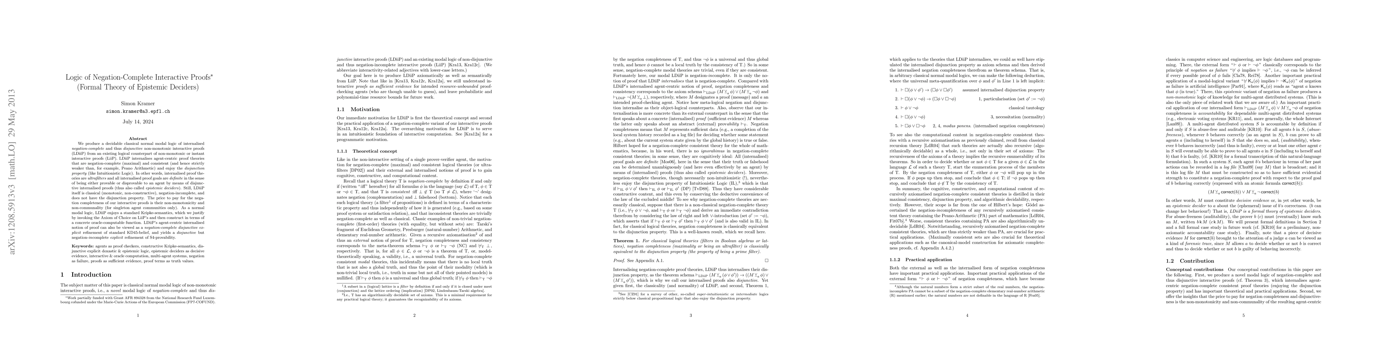 This paper introduces a decidable classical normal modal logic (LDiiP) for negation-complete interactive proofs, derived from non-monotonic interactive proofs (LiiP). LDiiP represents disjunctive non-monotonic proofs that are internally negation-complete and consistent, yet strictly weaker than Peano Arithmetic. Despite its classical nature, LDiiP supports agent-centric proof theories that are ultrafilters and disjunction-property compliant, though it remains negation-incomplete and non-communal.